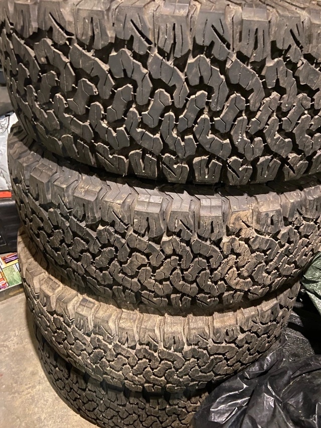 I'm selling a set of four used LT 275/60R20 BFGoodrich M&S tires mounted on black rims. These tires are ready to tackle any terrain with their robust tread and all-season capability. Perfect for your truck or SUV, they offer both style and performance. Please note that the tires are used but just need cleaning. Additional details: * Tire Size: LT 275/60R20 * Tire Brand: BFGoodrich * Season: M&S (Mud and Snow) * Rims: Black Looking at similar sets, a reasonable price for these used tires is around $1100. If the ad is up, they're still available.