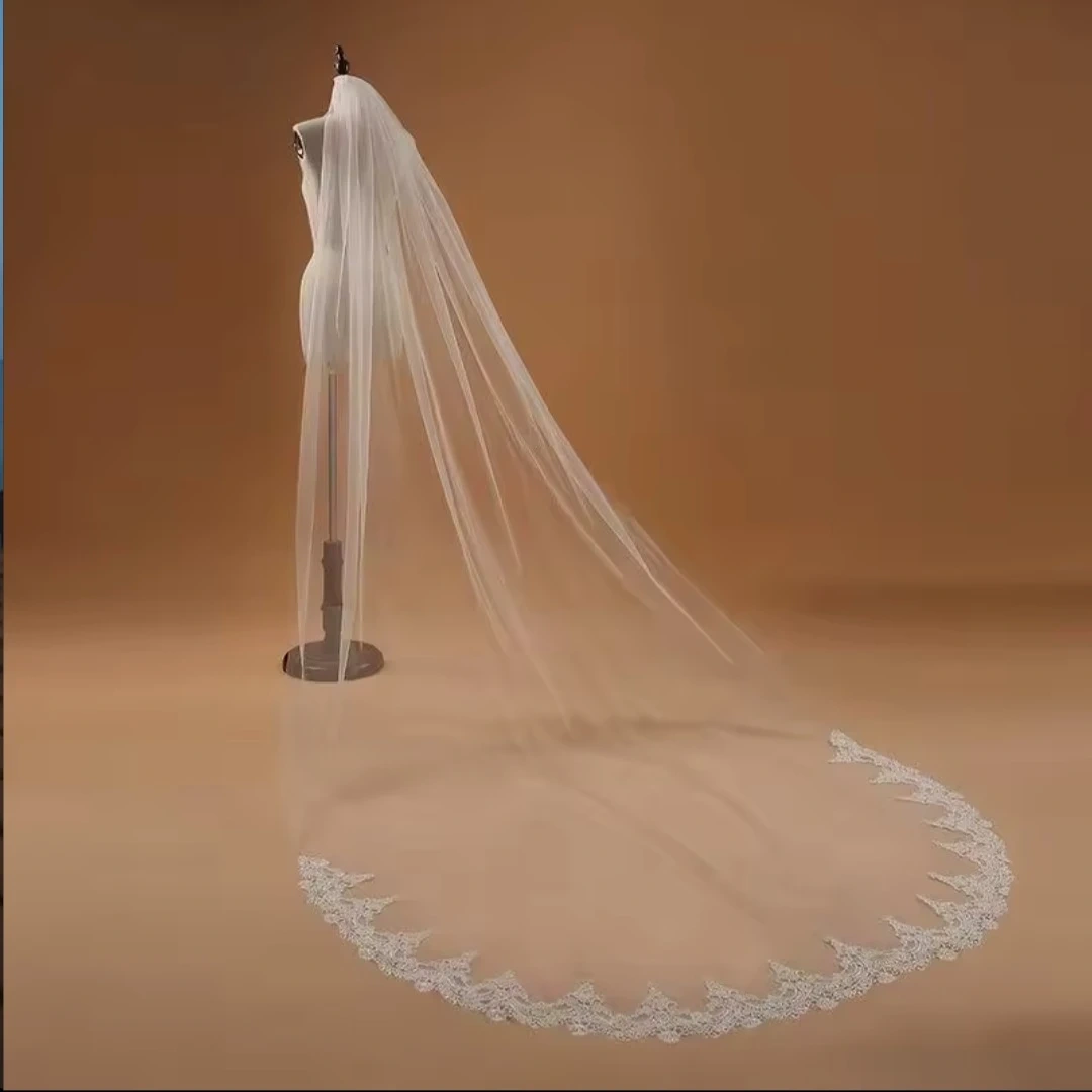 Selling a beautiful, long wedding veil. It features delicate lace detailing along the edge. Perfect for adding a touch of elegance to your special day!