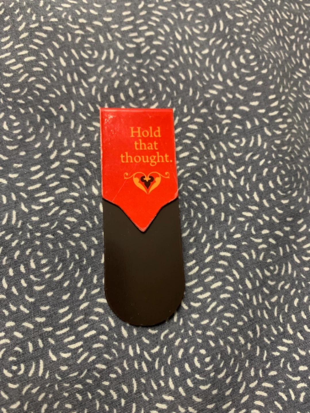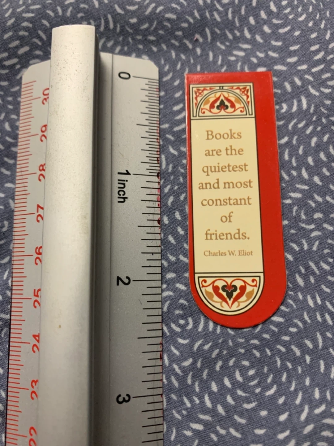 1000+A bookmark with the phrase "Hold that thought" on one side and "Books are the quietest and most constant of friends" by Charles W. Eliot on the other