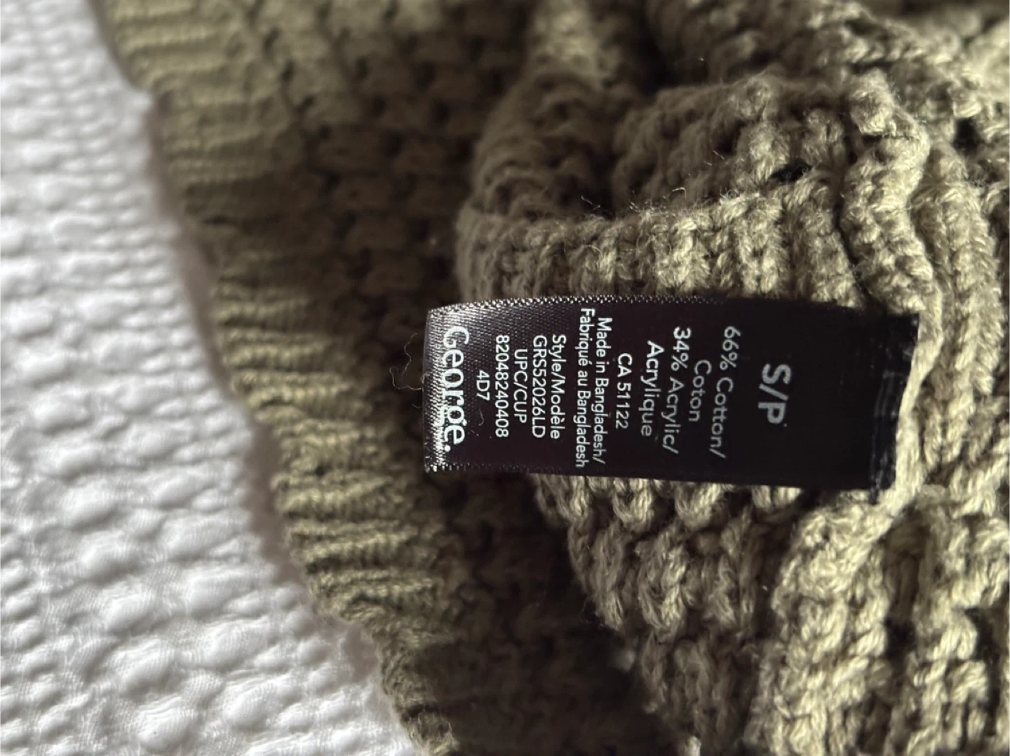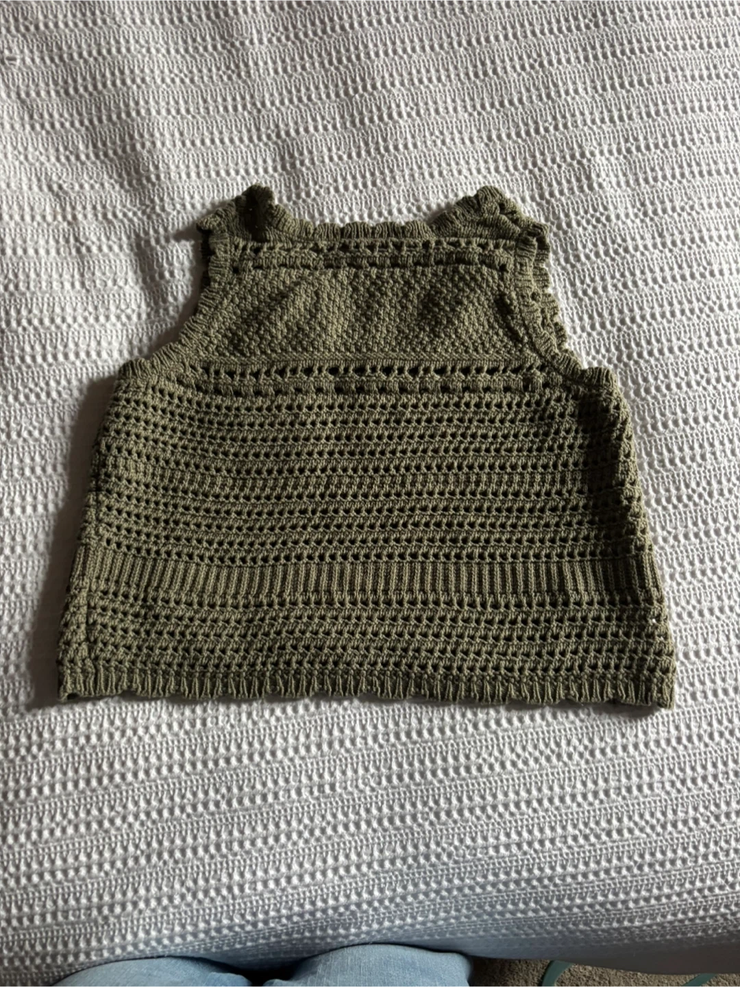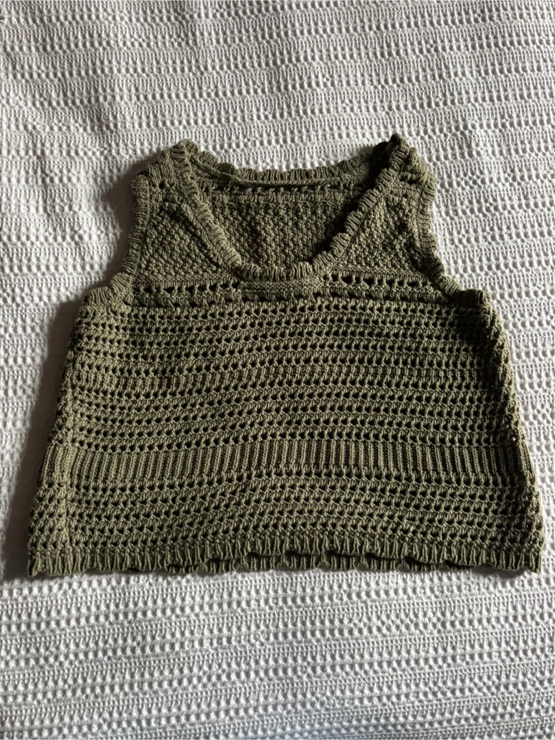 This cute crochet knit tank from George is a size small. It's made of 66% cotton and 34% acrylic. Perfect for layering. A medium weight to the crochet.