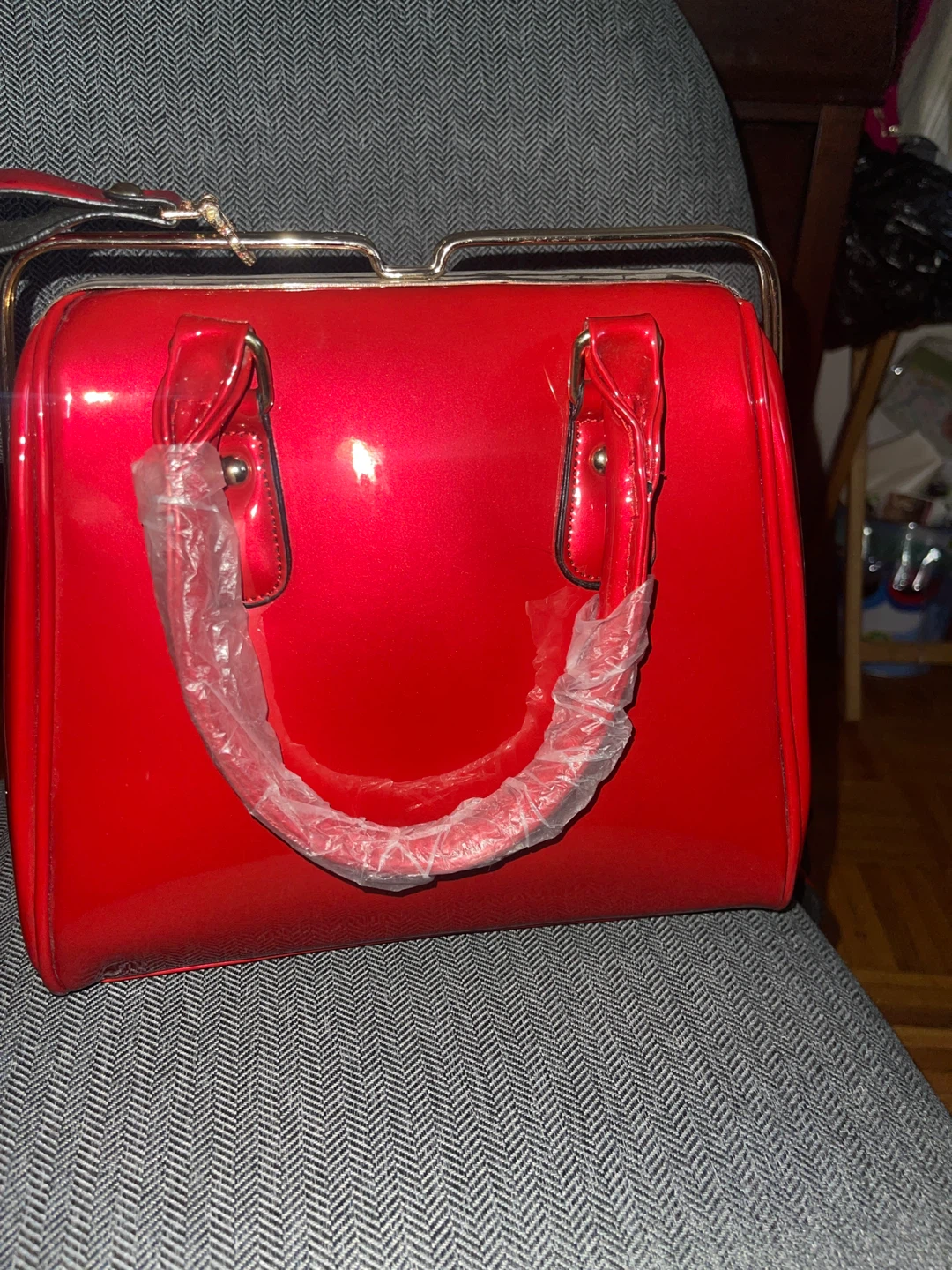 A beautiful red patent leather handbag! Brand new perfect condition. Never been used. The shiny patent leather gives it a unique and sleek look. Perfect for adding a pop of colour to any outfit