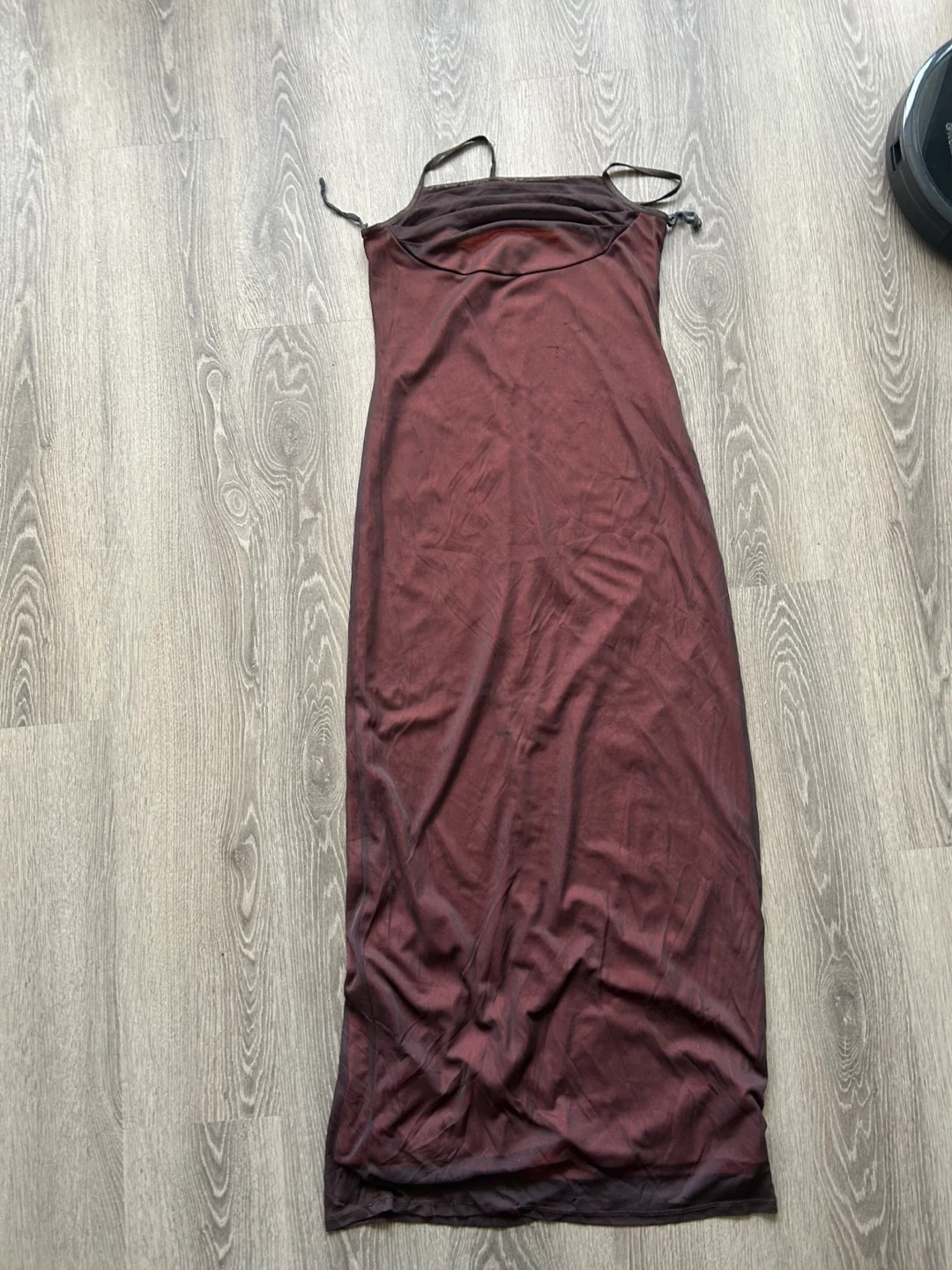 A rusty brown/ almost burgundy dress is up for grabs! It's a lovely colour and would be a great addition to any wardrobe. Some fraying from being in the closet so long but not too noticeable. Willing to accept best offer if you pick it up.