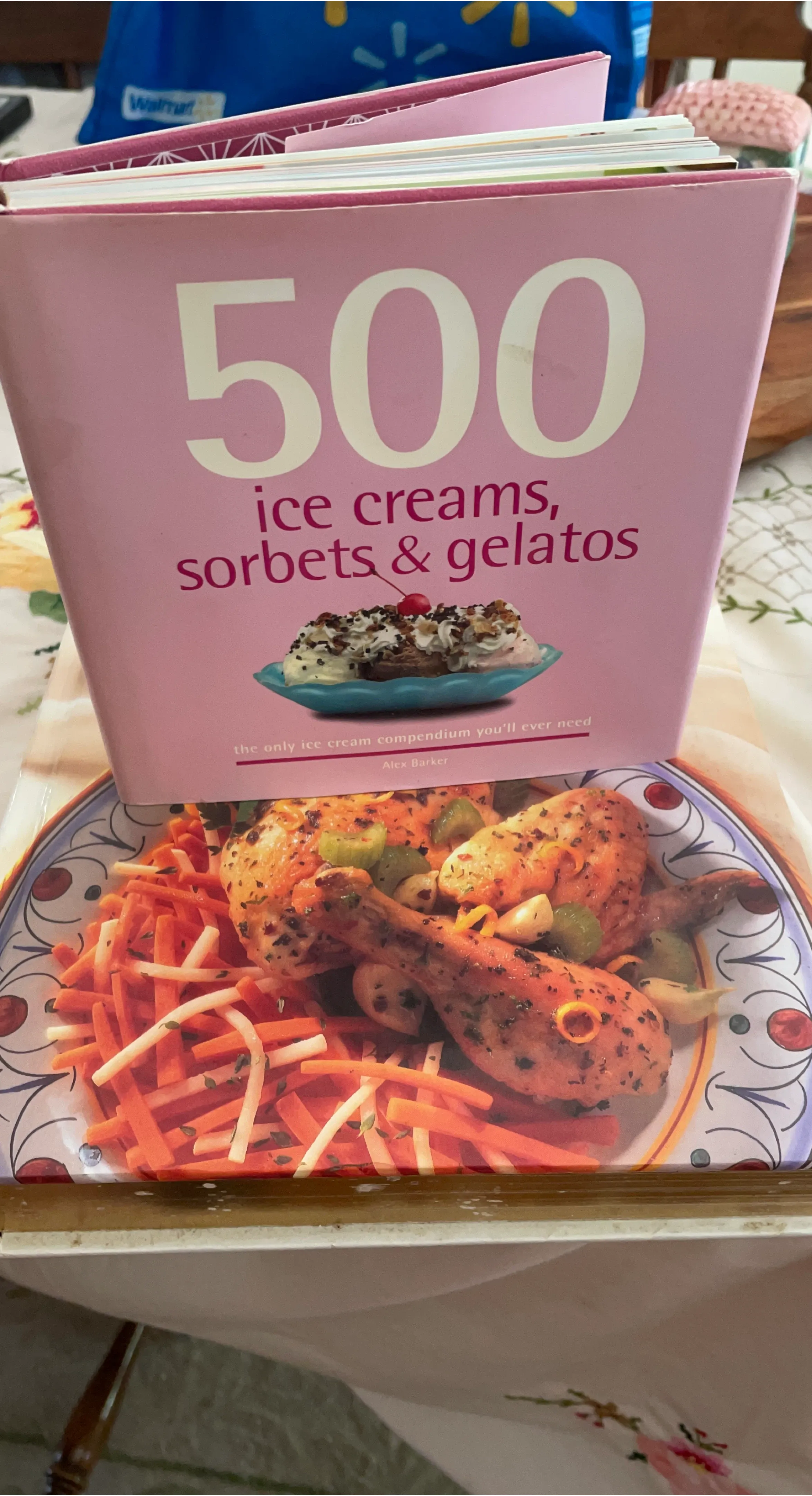 Selling a cookbook titled '500 Ice Creams, Sorbets & Gelatos' by Alex Barker! It's a compendium for anyone who loves making frozen desserts at home