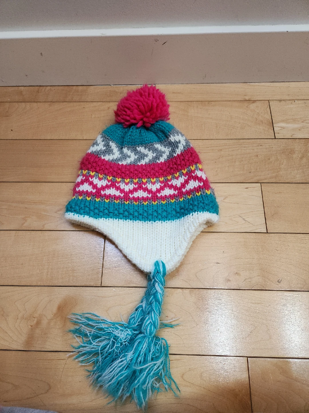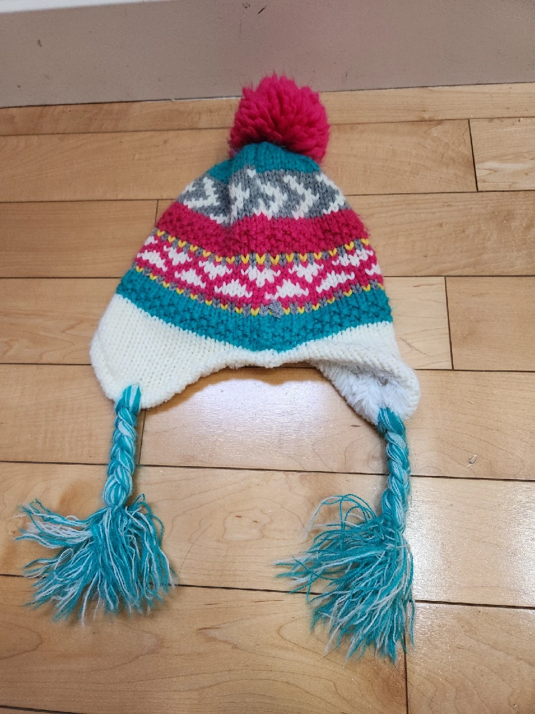 Selling a Mountain Warehouse patterned stripe knit kids winter hat. Lightweight, warm, knitted & stretchy Fabric with double layer. Great choice for the slopes or everyday wear. No rips or stains. Comes from a smoke and pet free home.