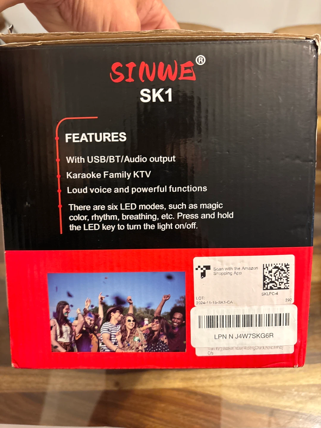 Selling a SINWE SK1 Karaoke Family KTV speaker system. It comes with two microphones and has a USB/BT/Audio output. The speaker has six LED modes, such as magic colour, rhythm, and breathing. It's black, used once, and is in like/new condition, ready for your next karaoke night!