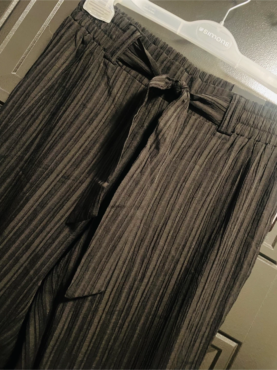These brand new ( unused) Soho Apparel LTD New York pants feature a stylish striped design and a comfortable tie-waist. They are brand new with tags and ready to wear. Perfect for adding a touch of sophistication to your wardrobe!