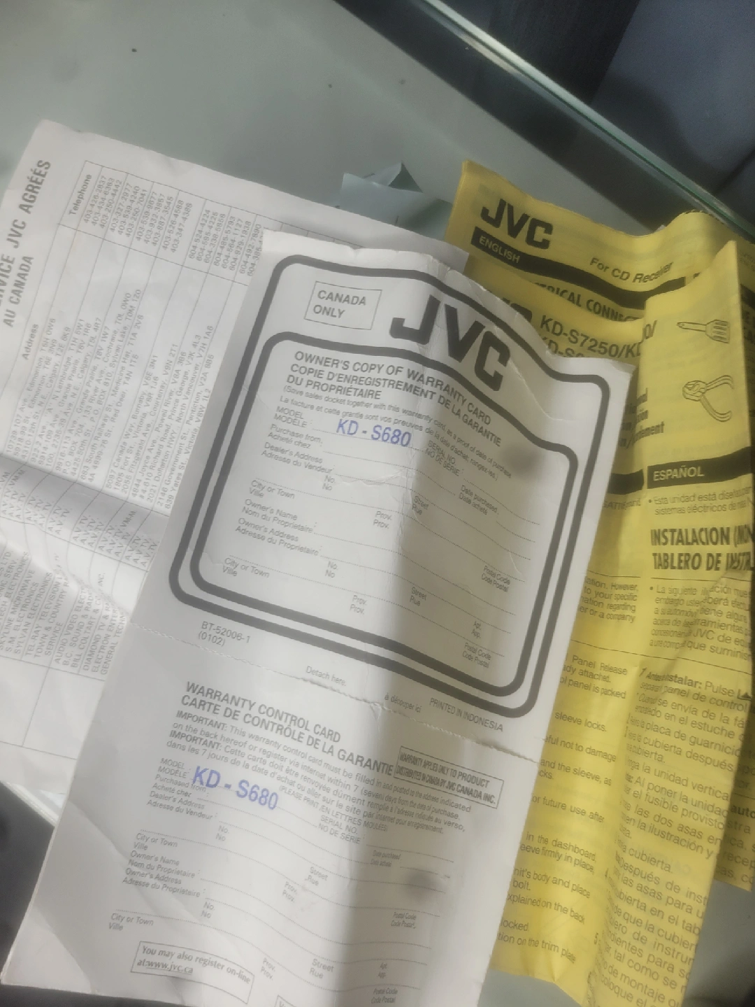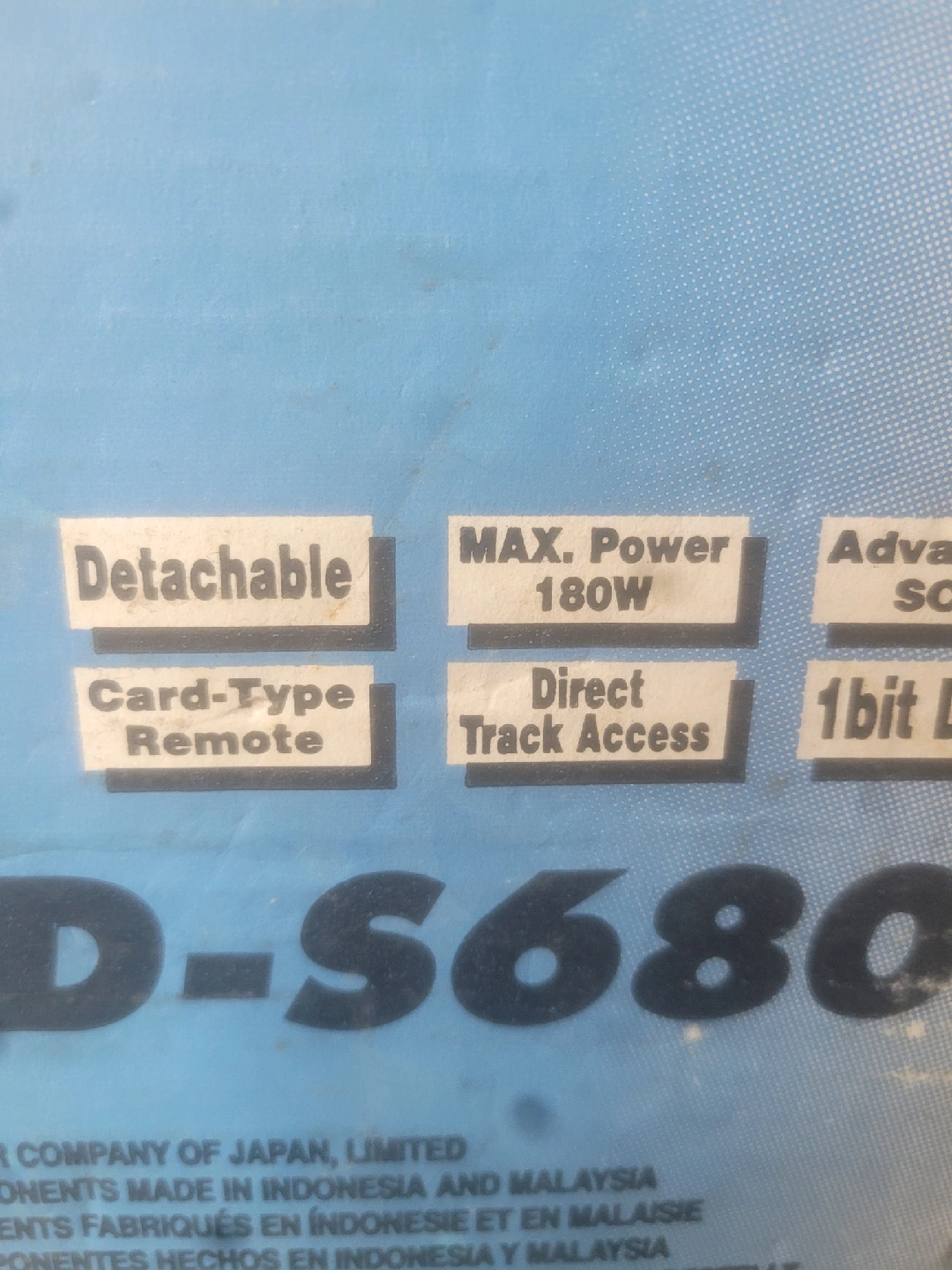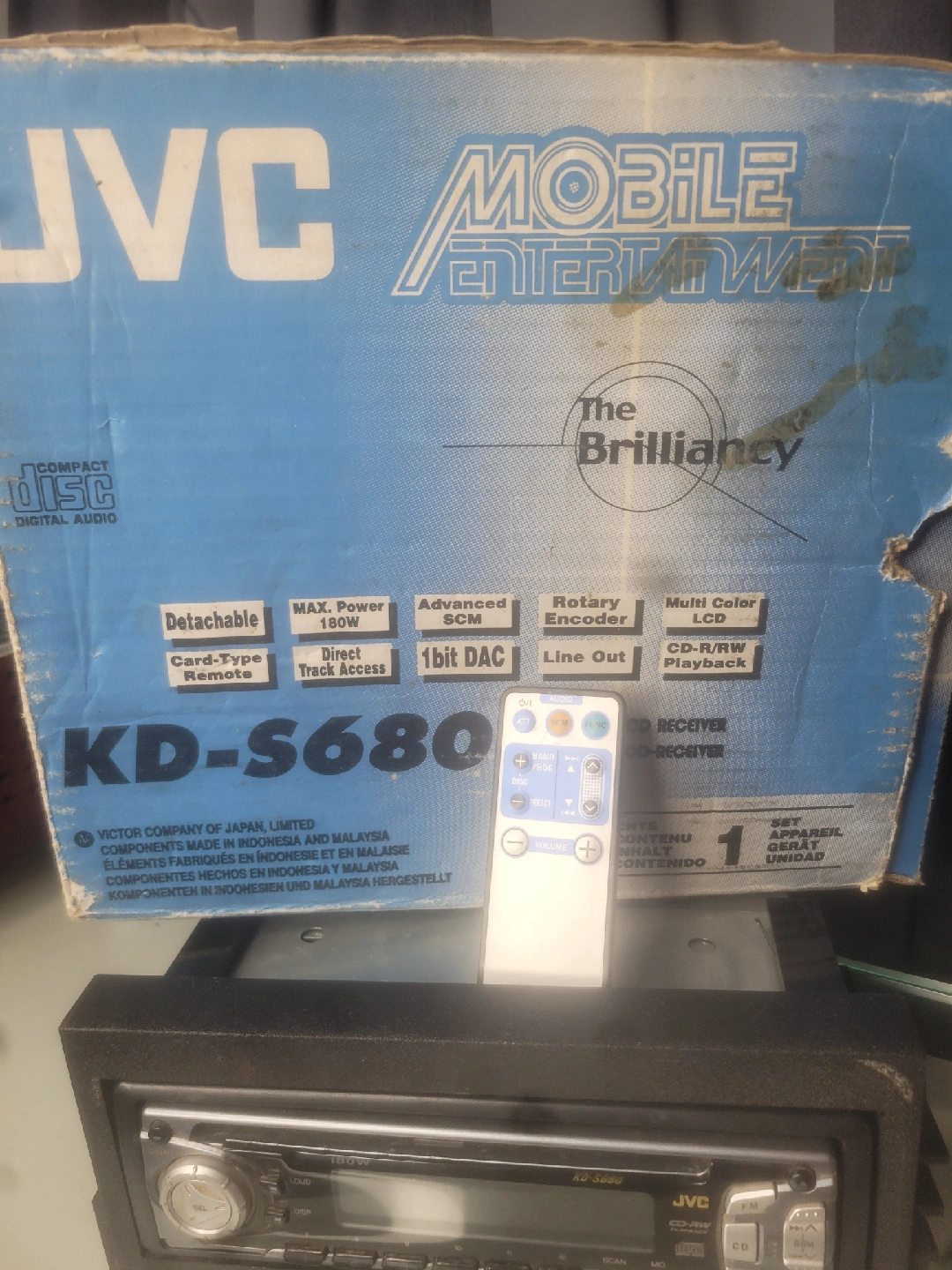 259Selling a JVC KD-S680 car CD player. It comes with a remote control and the original box. Features include: - Detachable faceplate - Max Power 180W - CD-R/RW Playback - Multi Color LCD Ex left it here years ago. make an offer :)