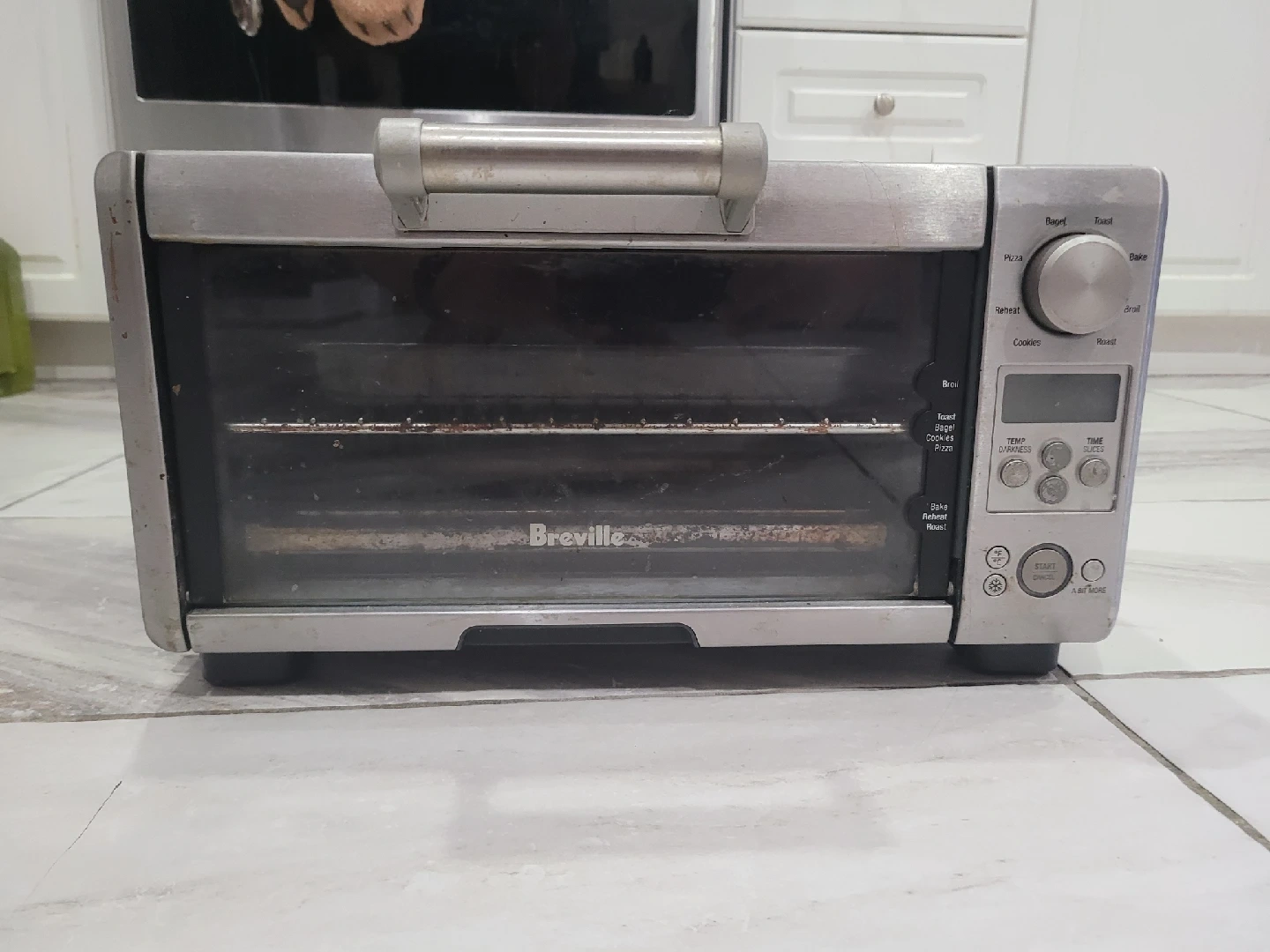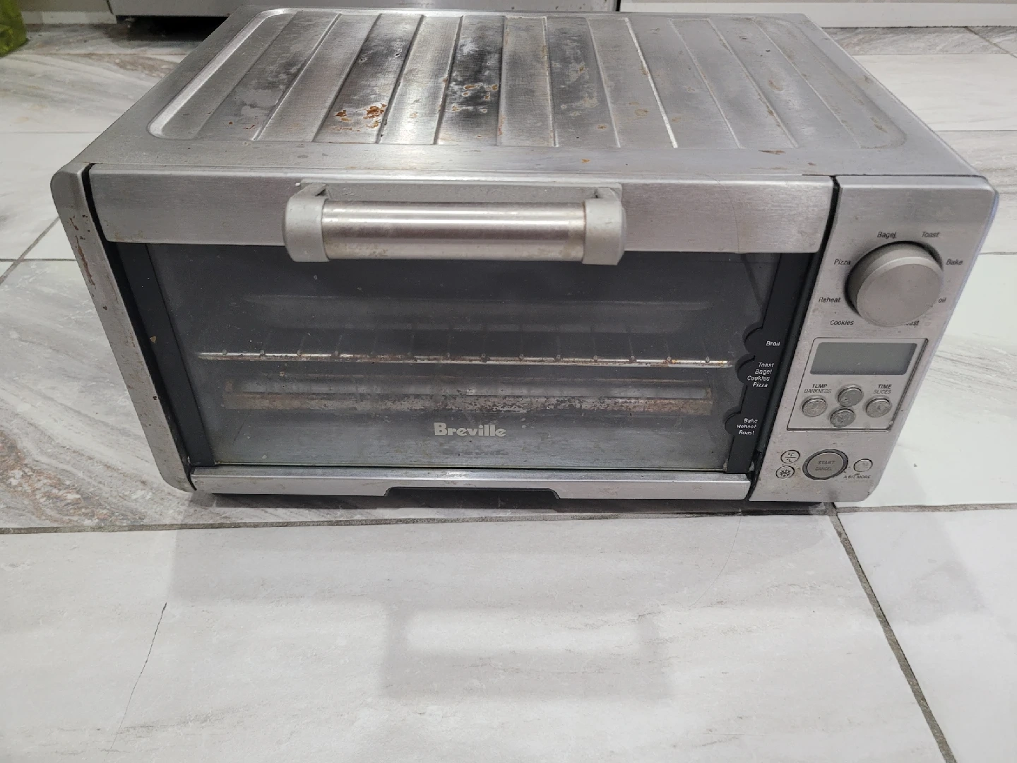 Selling a Breville toaster oven. It's in used condition but still works great for toast, bagels, pizza, and more! Perfect for smaller kitchens or anyone needing an extra oven