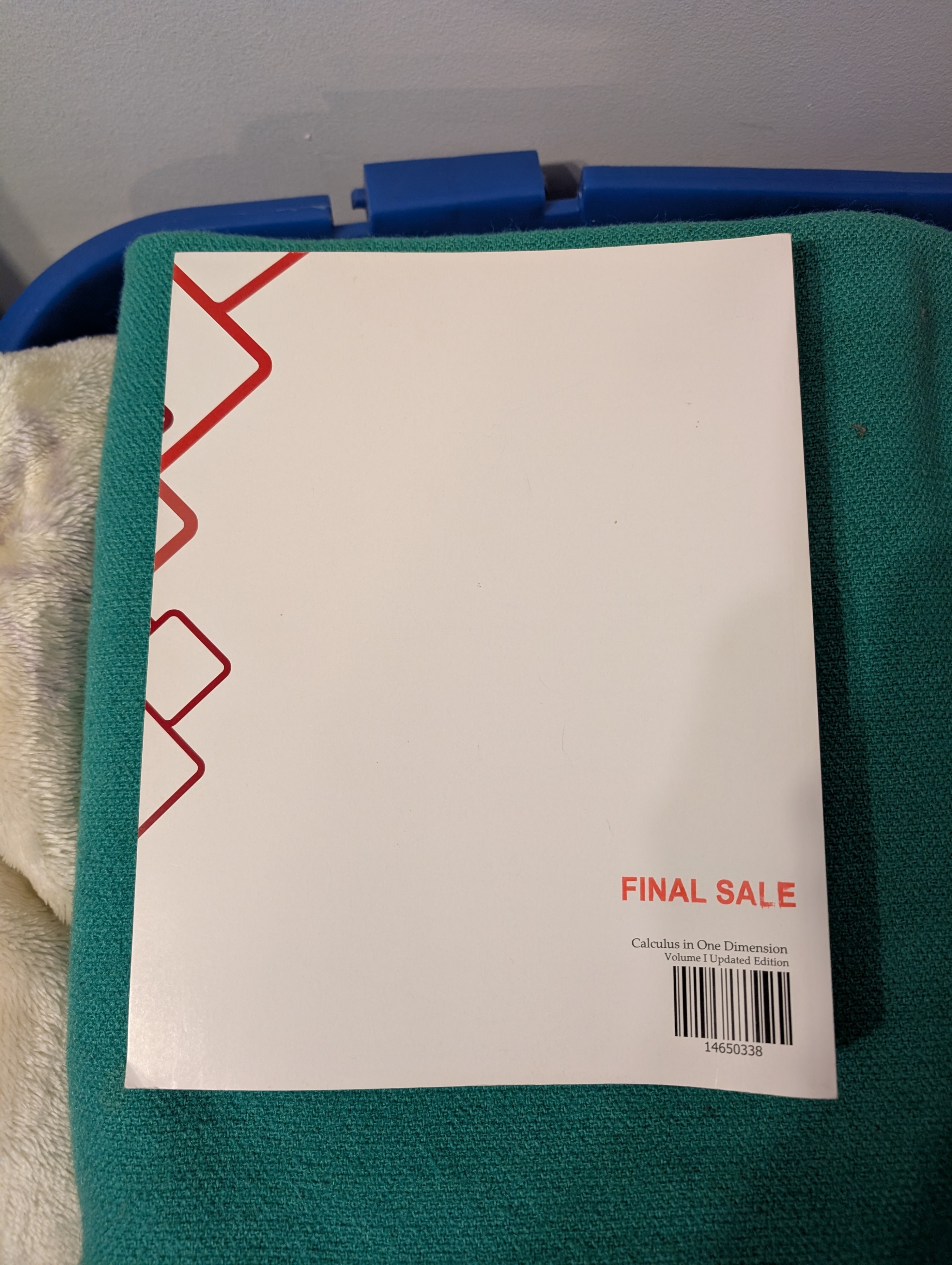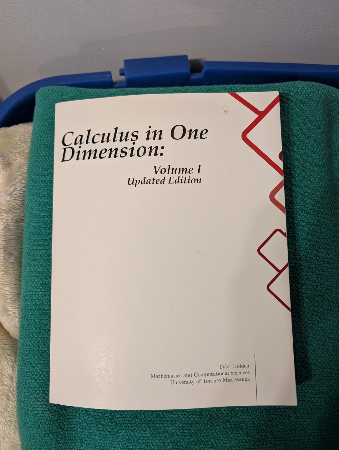 Selling this Calculus in One Dimension: Volume 1 Updated Edition textbook by Tyler Holden. I bought it because I started MAT137 at UTM, but dropped it after a couple weeks.