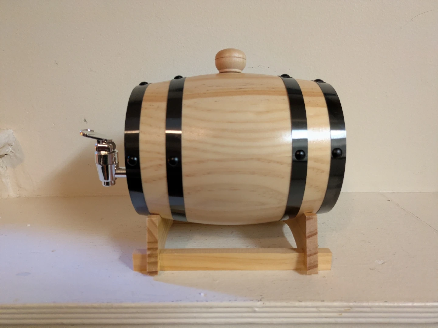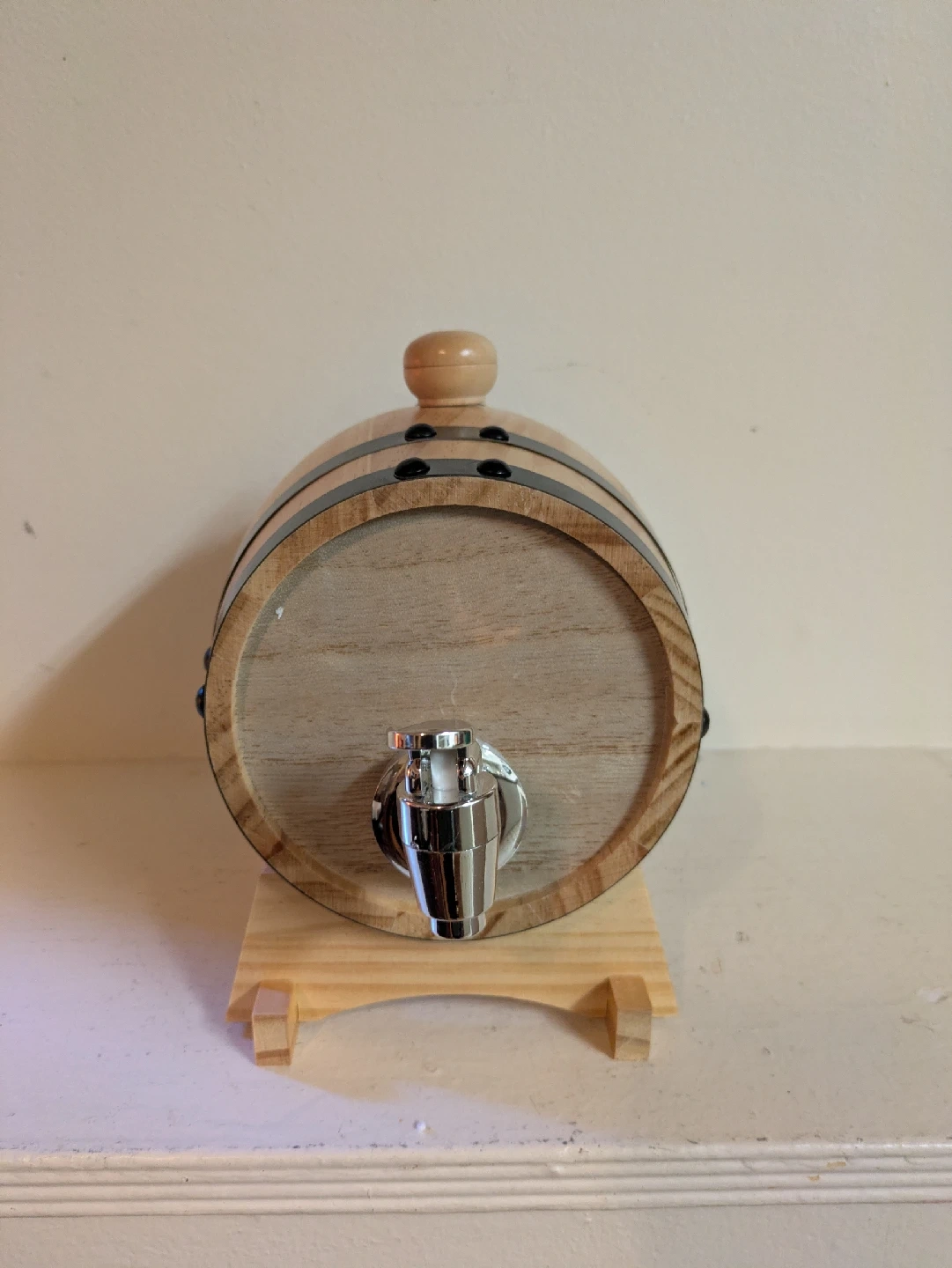 Wooden Wine / Whisky barrel dispenser for drinks! It holds 1L and has a convenient tap.