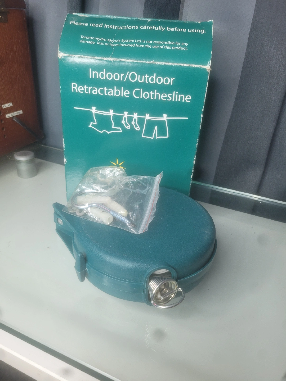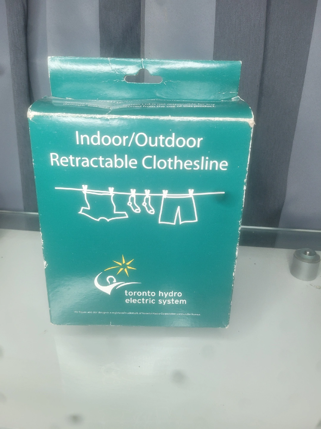 248Selling a Toronto Hydro Indoor/Outdoor Retractable Clothesline! It comes with the box and all the included components. Perfect for small spaces or for travel, making it super convenient to dry your clothes anywhere