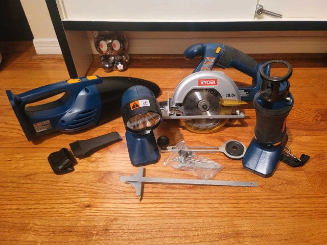 Like New (some never used) Ryobi Tools Whole Set of 4 with Battery charger only. Everything pictured is included. Sold out at Home Depot, originally $298. All Sales Final