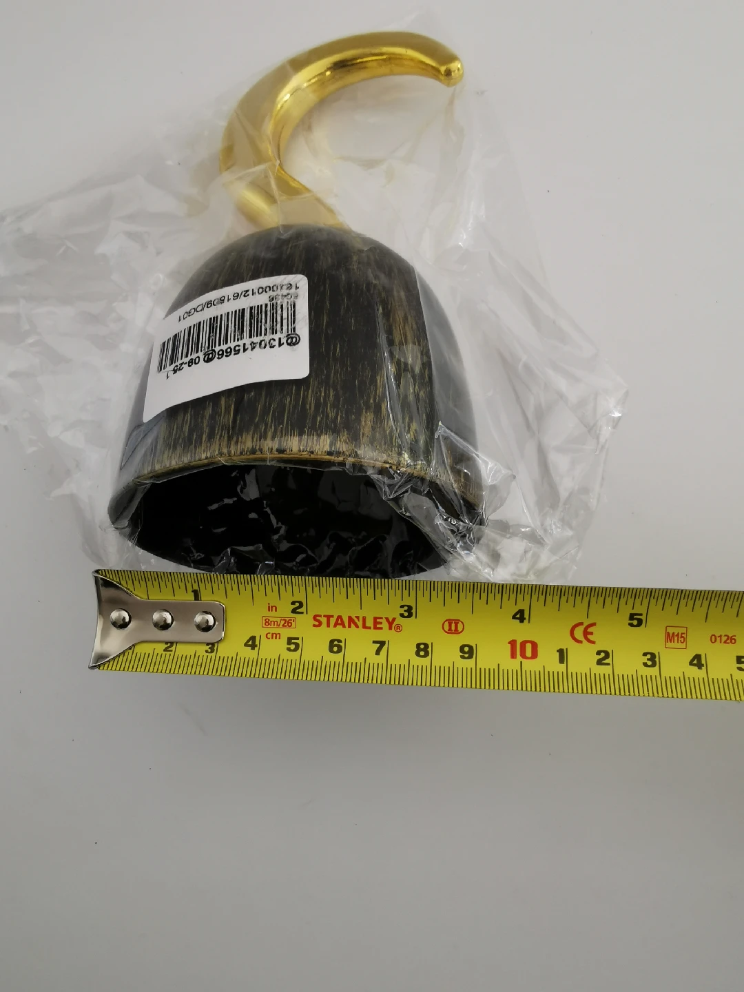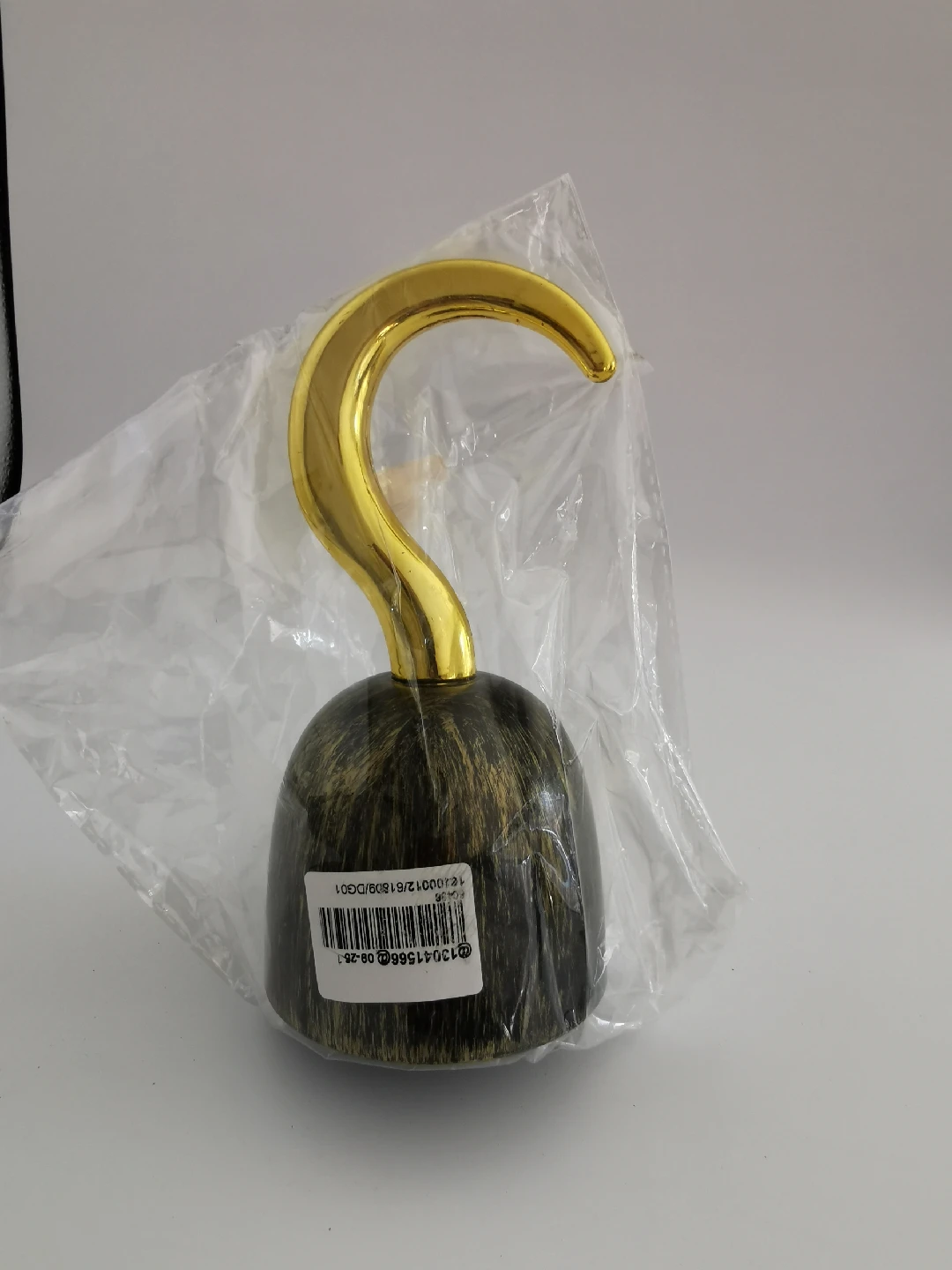 Here's a pirate hook, perfect for costumes or decoration! The hook is gold-coloured and the base is black with gold accents.