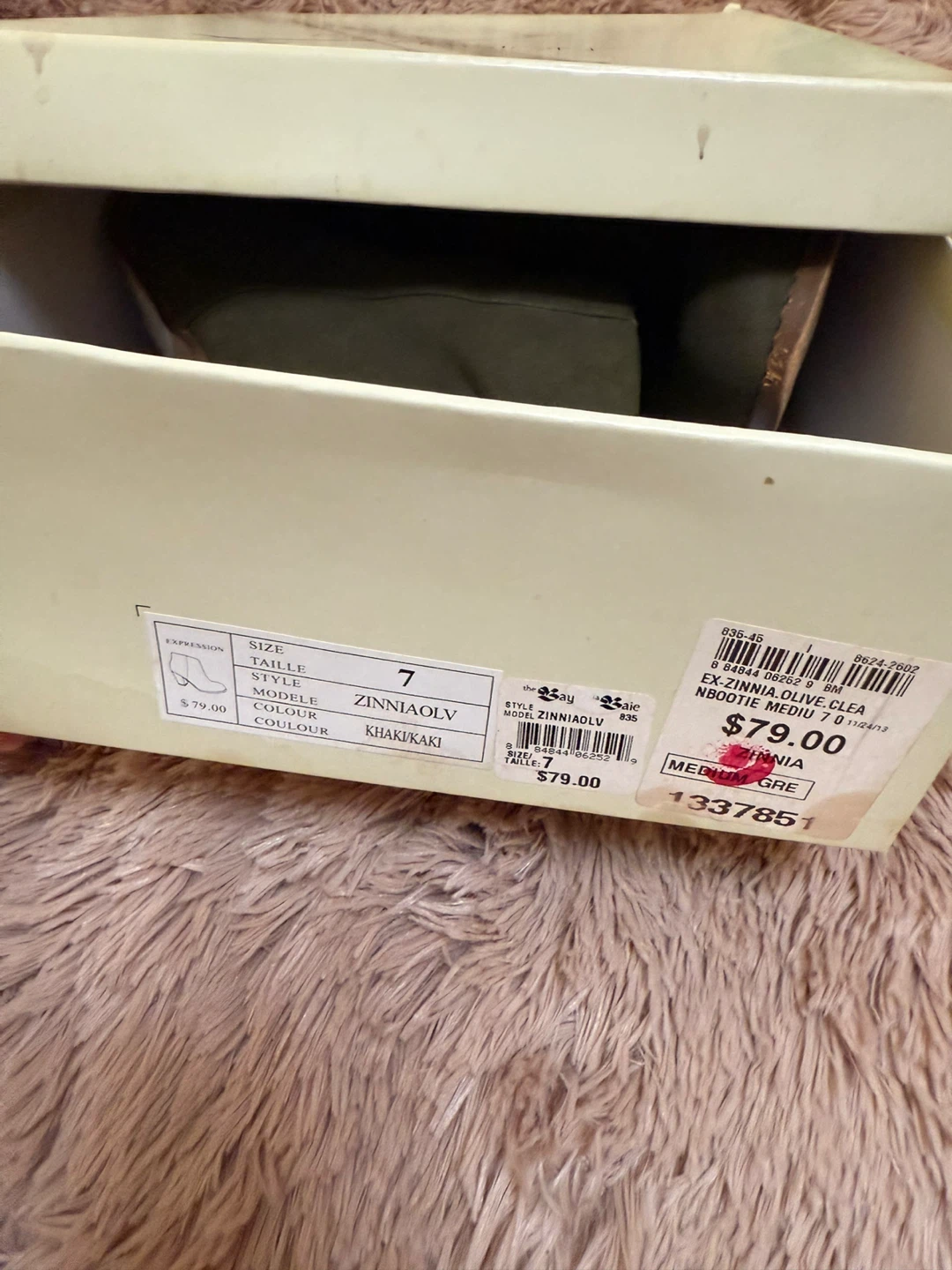 Selling a pair of khaki/olive Expression ankle boots in size 7!. Originally bought for $79