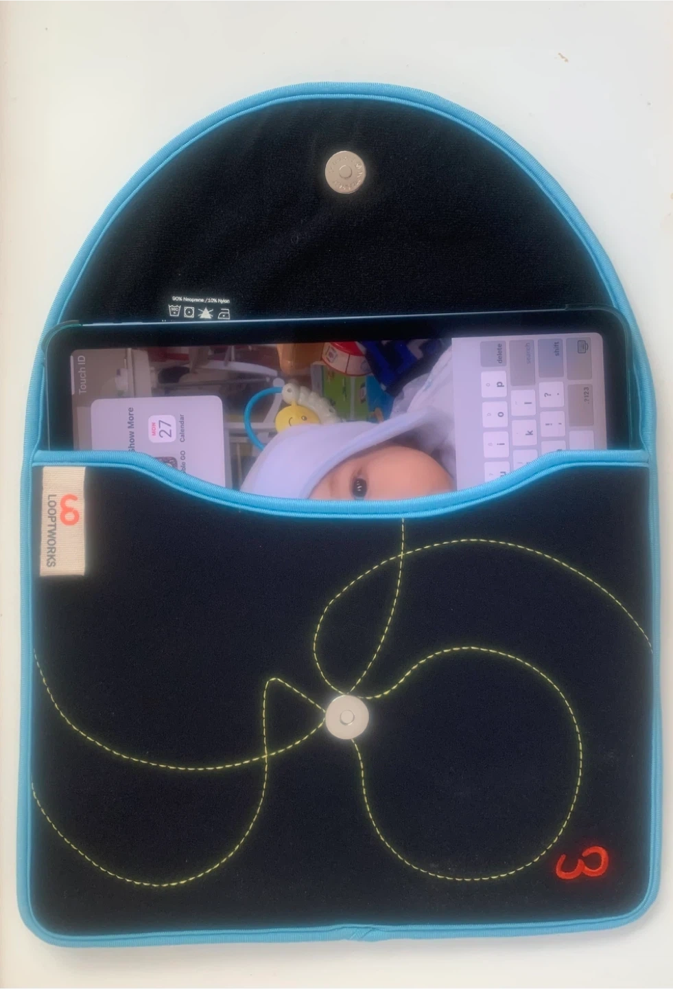 168Loopwork tablet sleeve. New. The sleeve is black and tan with a blue trim. 8x 10 inches. Pick up at Eglinton Ave east at Bayview.