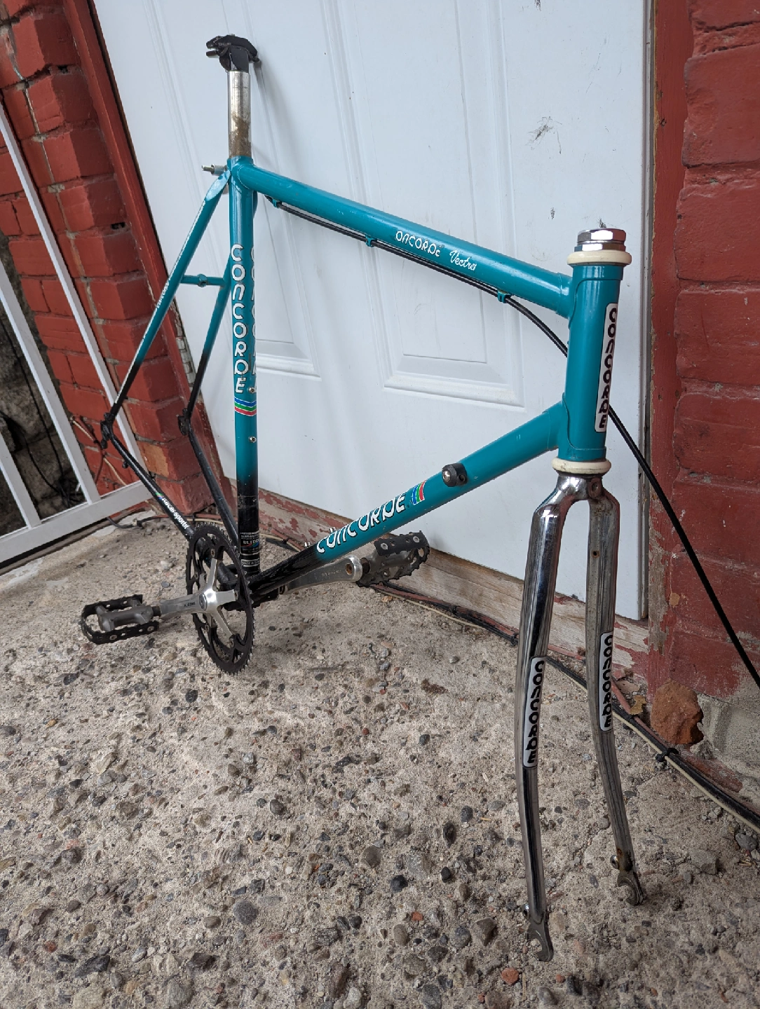 10I am selling a vintage Concord bicycle frame, which is a unique find for any cycling enthusiast. The frame shows its age with some wear and tear, but it's still a solid piece of cycling history. This frame is ready for a new build, and its classic design is sure to turn heads. * Brand: Concord * Frame Material: Chrome-Moly Tubing Looking at this beauty, it's hard not to imagine the adventures it's seen. It could tell tales of speedy races and leisurely rides through scenic routes. So, if you're looking to bring a bit of retro charm to your cycling experience, this frame is an excellent starting point! If the ad is up, yes, it's still available!