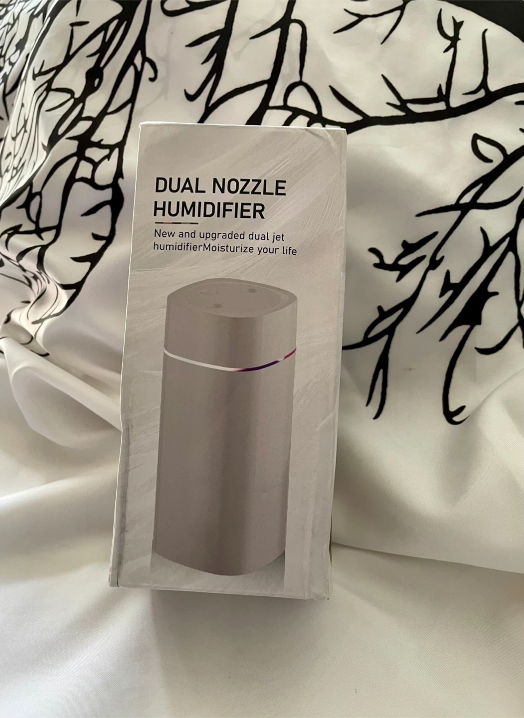 147Giving away a brand new Dual Nozzle Humidifier, still in its original box! It has a USB interface and silent operation. It also features two-speed adjustment and colorful lights. Keep your space moisturized with this handy humidifier Is roughly 5-6 inches tall and 4 inches wide.