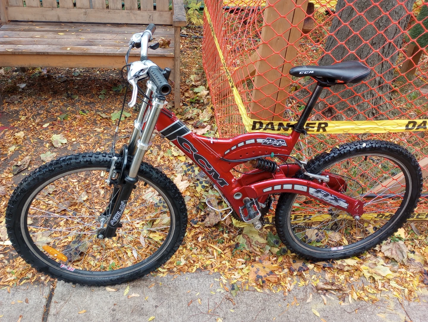 126CCM AX ONE DS Bike 26 inch 18.5" Aluminum 21 Speed Shimano Equipped V-brake Tires are new Great shock performance Great for people 5.5-6ft Supports heavy weight Location is Eglinton Ave and Mccowan Rd in Scarborough's