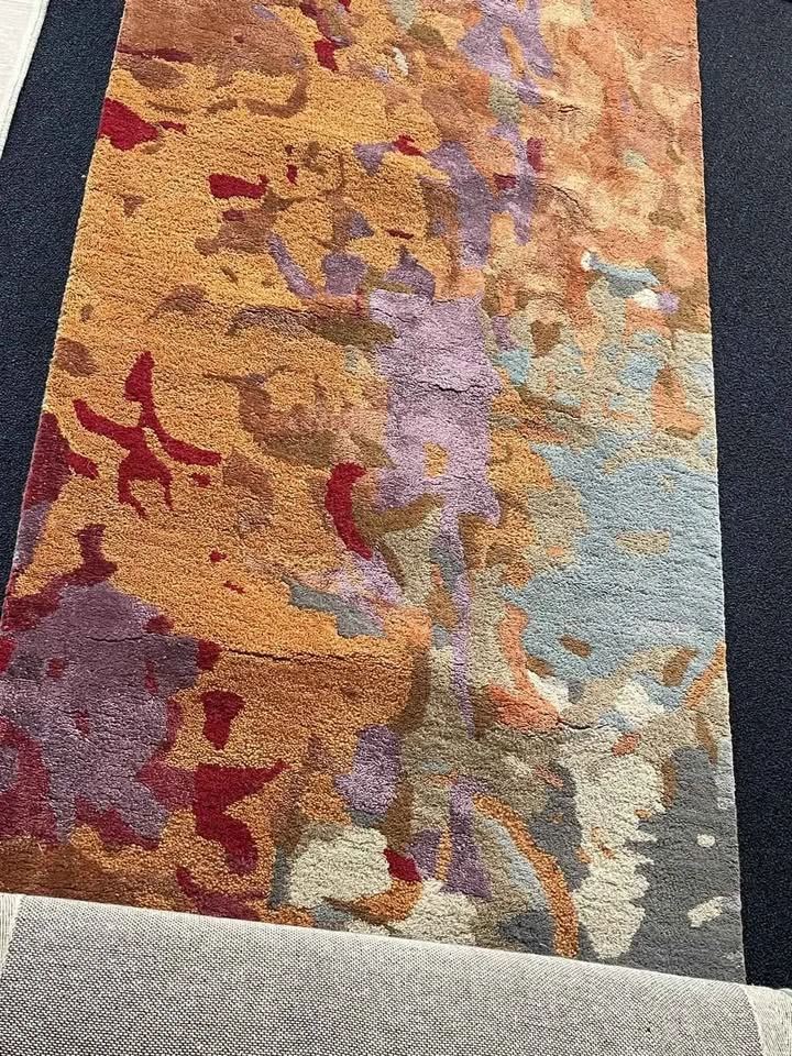 Brand New 3x8 Orange Multi Dense Abstract Wool Viscose Runner Rug