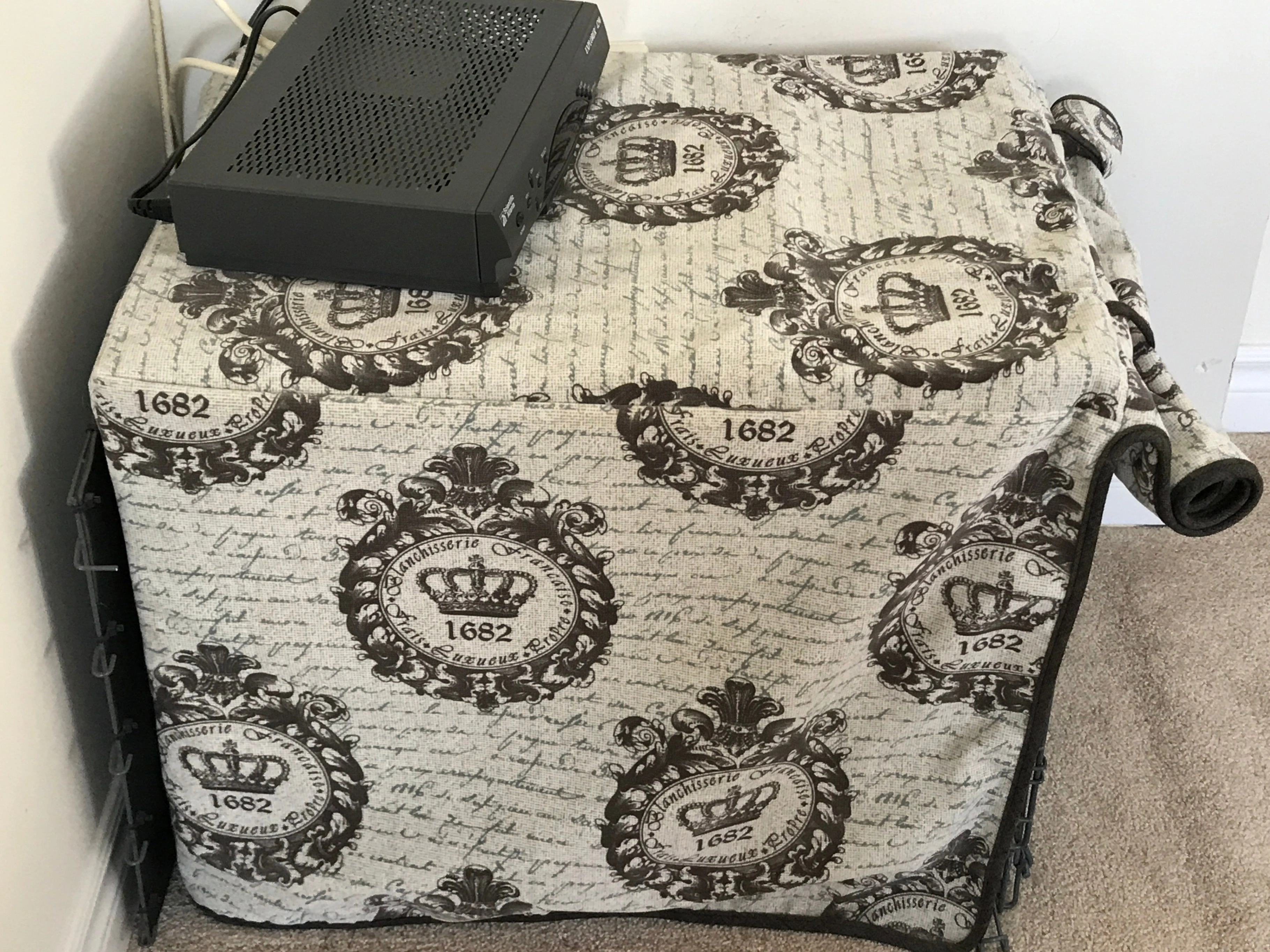 Combining beauty, comfort and convenience, our elegant Decorative Cover blends/accents any home décor. High-quality designer fabric fully lined with no visible seams. They are meticulously detailed, including a side roll-up shade with ties. Double door access. Dry clean only.