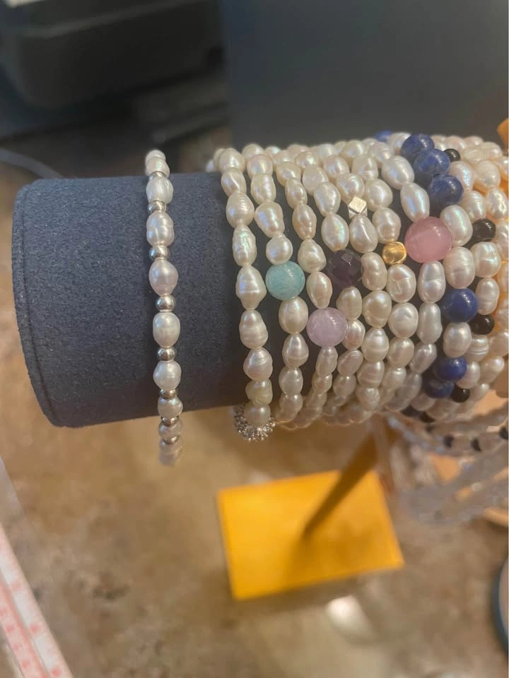 There are 19 sterling silver beads and 20 freshwater pearls. The clasp is extendable and sterling silver. Length: 17cm to 20cm. Pickup location Marpole Vancouver