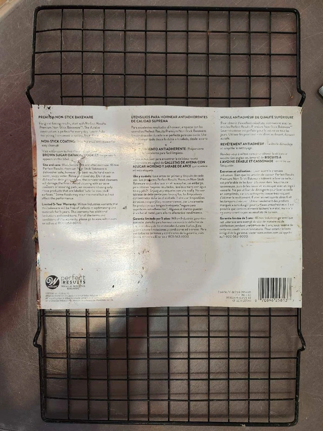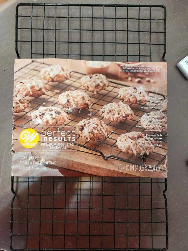 Keep your baked goods cool with this Wilton Perfect Results cooling grid, brand new in its original packaging! This 16x10 inch non-stick grid is ideal for cooling cookies, cakes, and more.