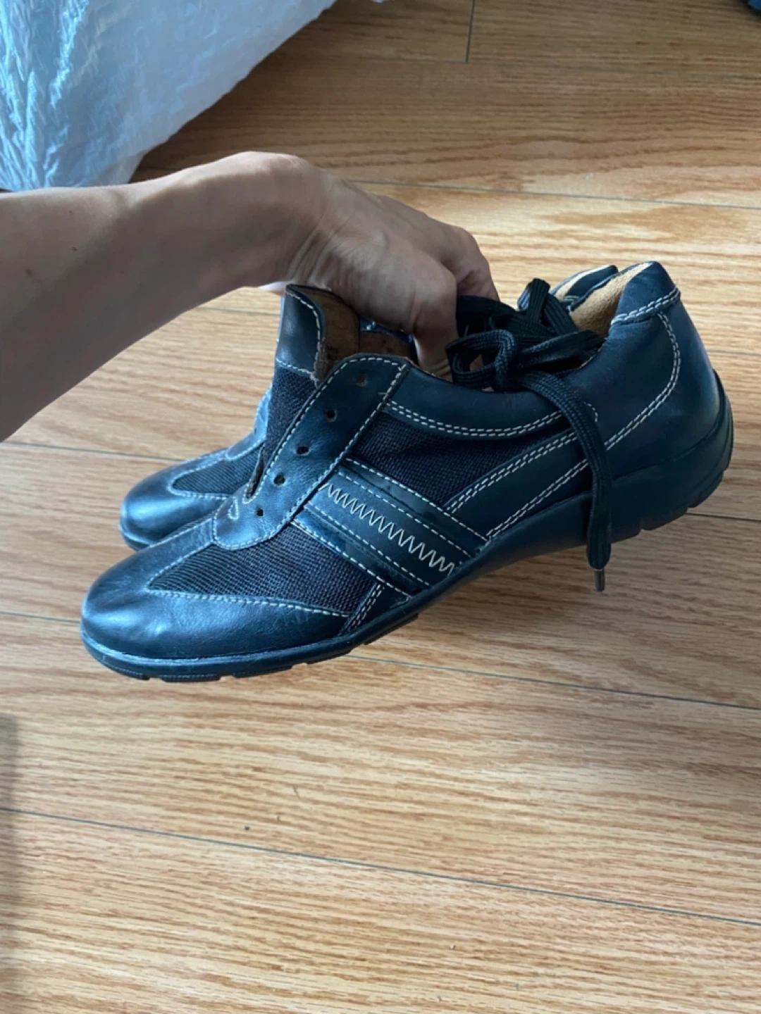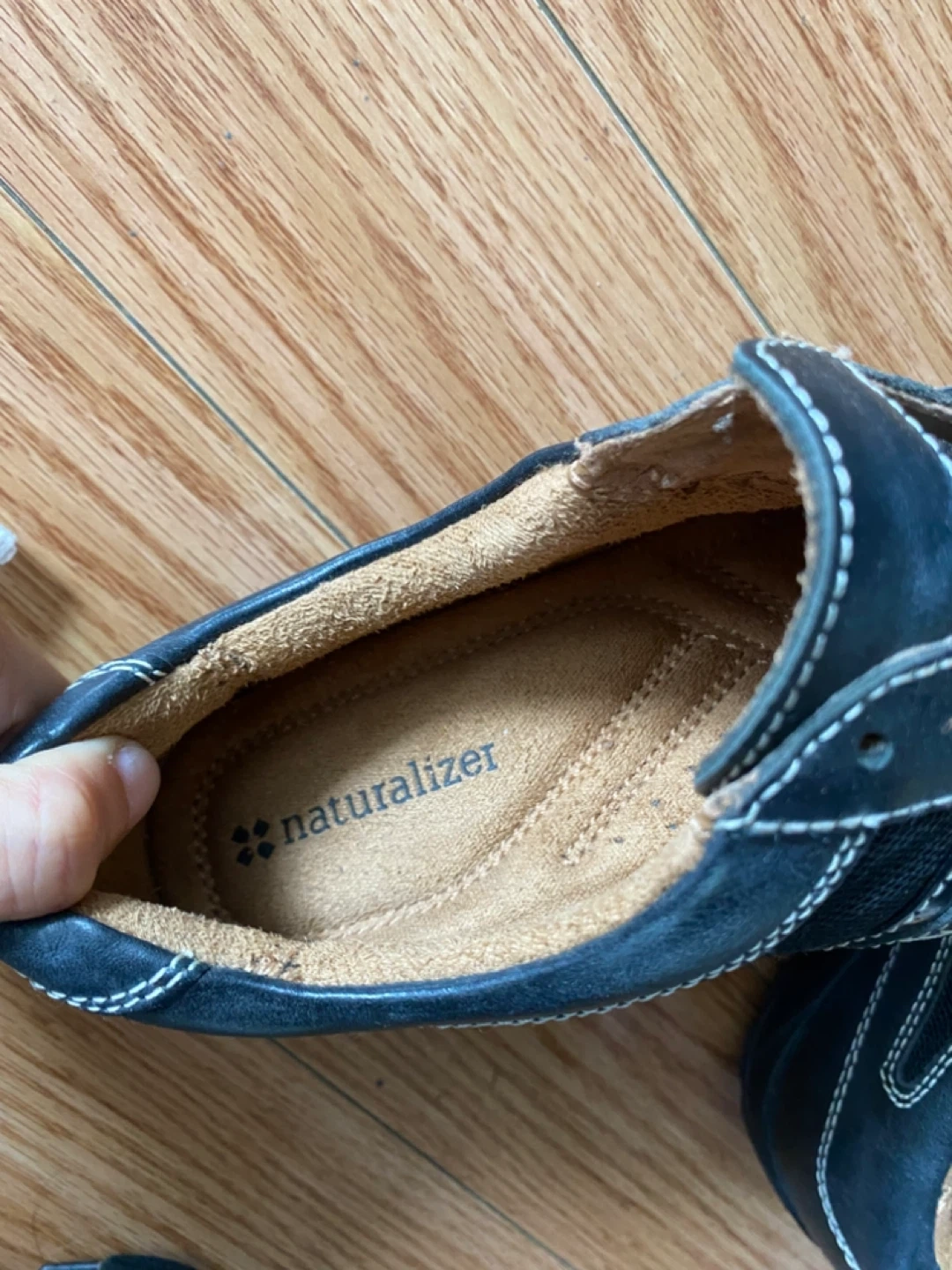 85Selling a pair of Naturalizer black leather sneakers. They are in good condition and very comfortable for everyday wear! The size is not visible, please see photos for details