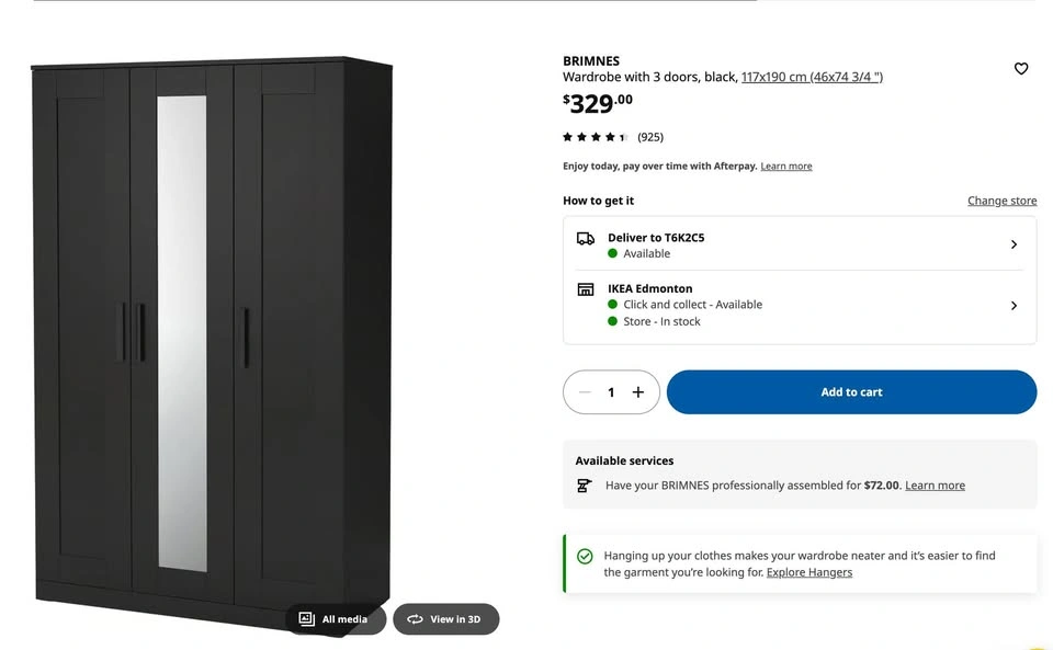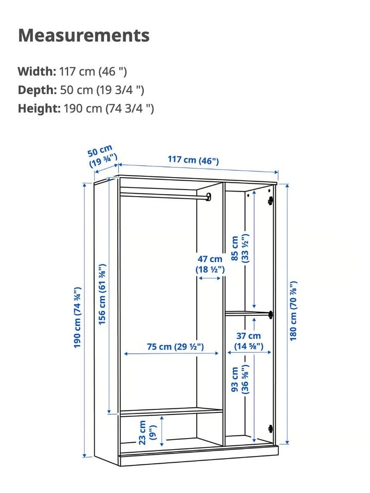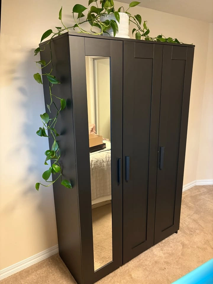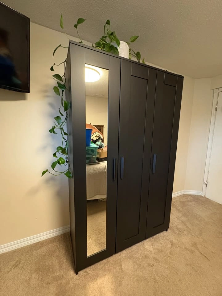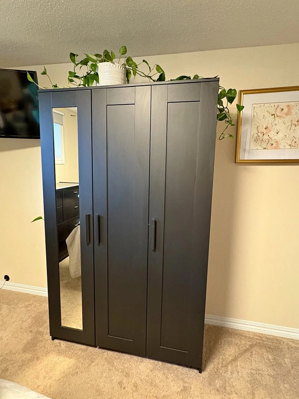 IKEA BRIMNES Wardrobe. The doors can be arranged with the mirror on either side.