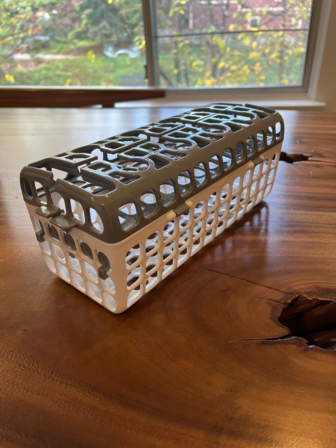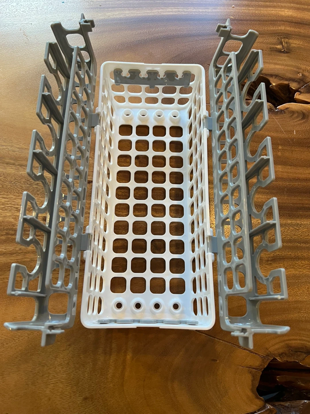 25Dishwasher cutlery basket in great condition! It's perfect for keeping your silverware organized and secure while it's being washed. The basket is white and grey. Holds small parts for baby bottles, sippy cups, straw cups and more for safe and thorough dishwashing