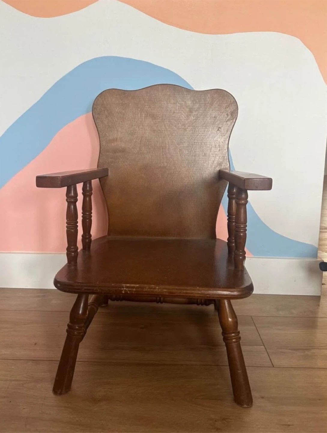 60Selling a cute wooden chair for kids! It's in great shape and perfect for a playroom or bedroom. The chair is sturdy and has a classic design that will fit with any decor