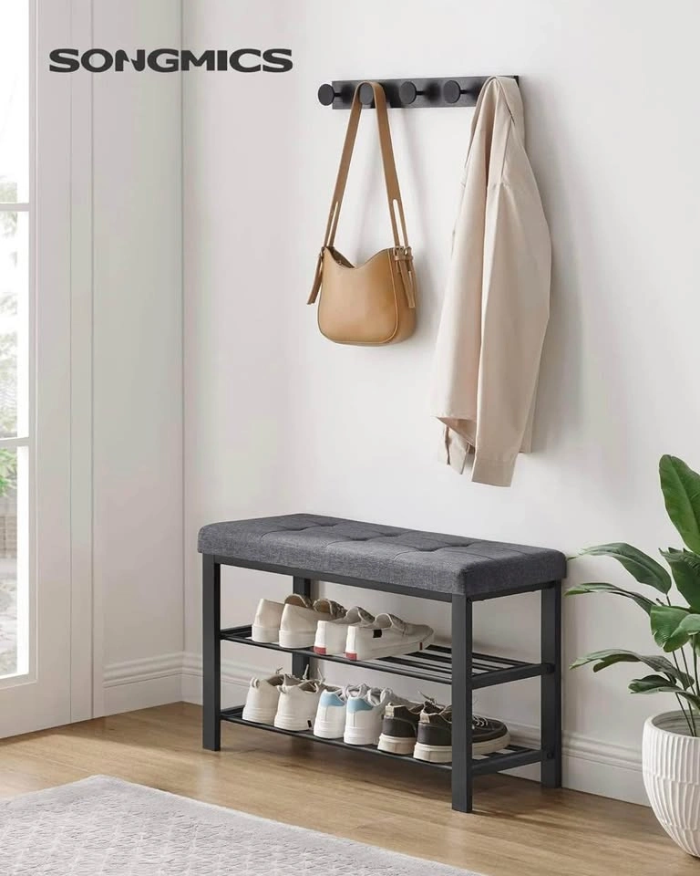108Absolutely new SONGMICS Shoe Storage Bench with Cushion. Size: 31 x 81 x 49 cm. Color: Dark Gray & Ink Black. Stylish and space-saving design — perfect for entryway, bedroom, or hallway. Comfortable padded seat and sturdy shoe rack. ✨ Modern look, high quality, never used. 💵 $70 (cash preferred) 📍 Pick up in Riverbend