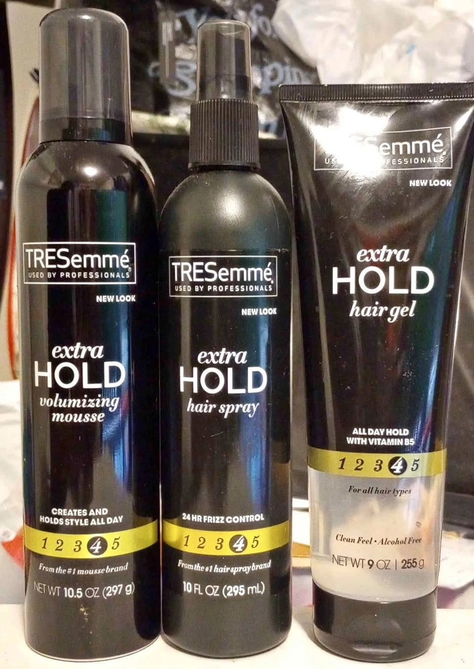 Selling sets of TreSemme Extra Hold mousse, hair spray, and gel
