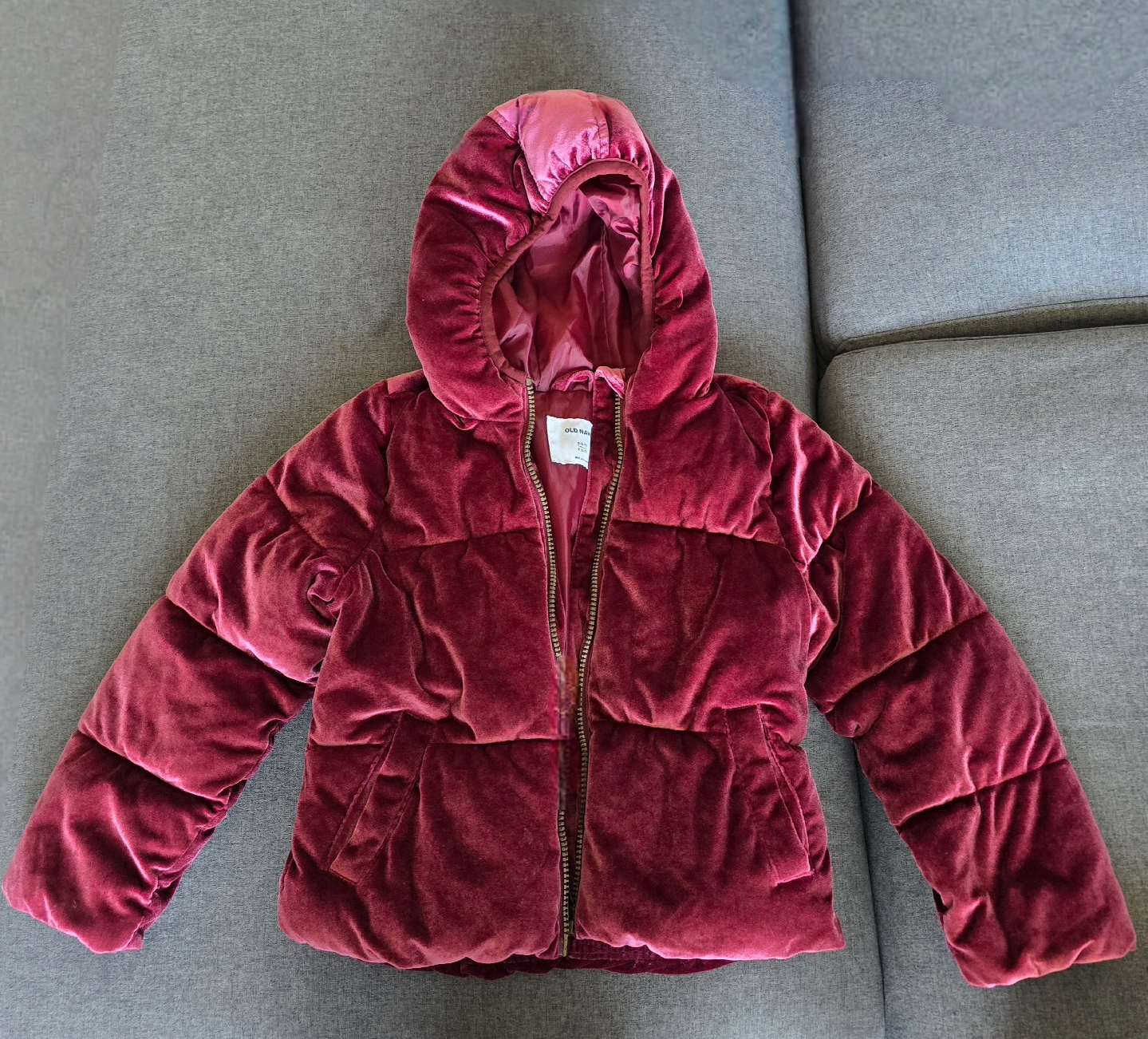 Selling a cute Old Navy velvet puffer jacket in size S (6-7)! It's in great condition and perfect for keeping your little one warm and stylish.