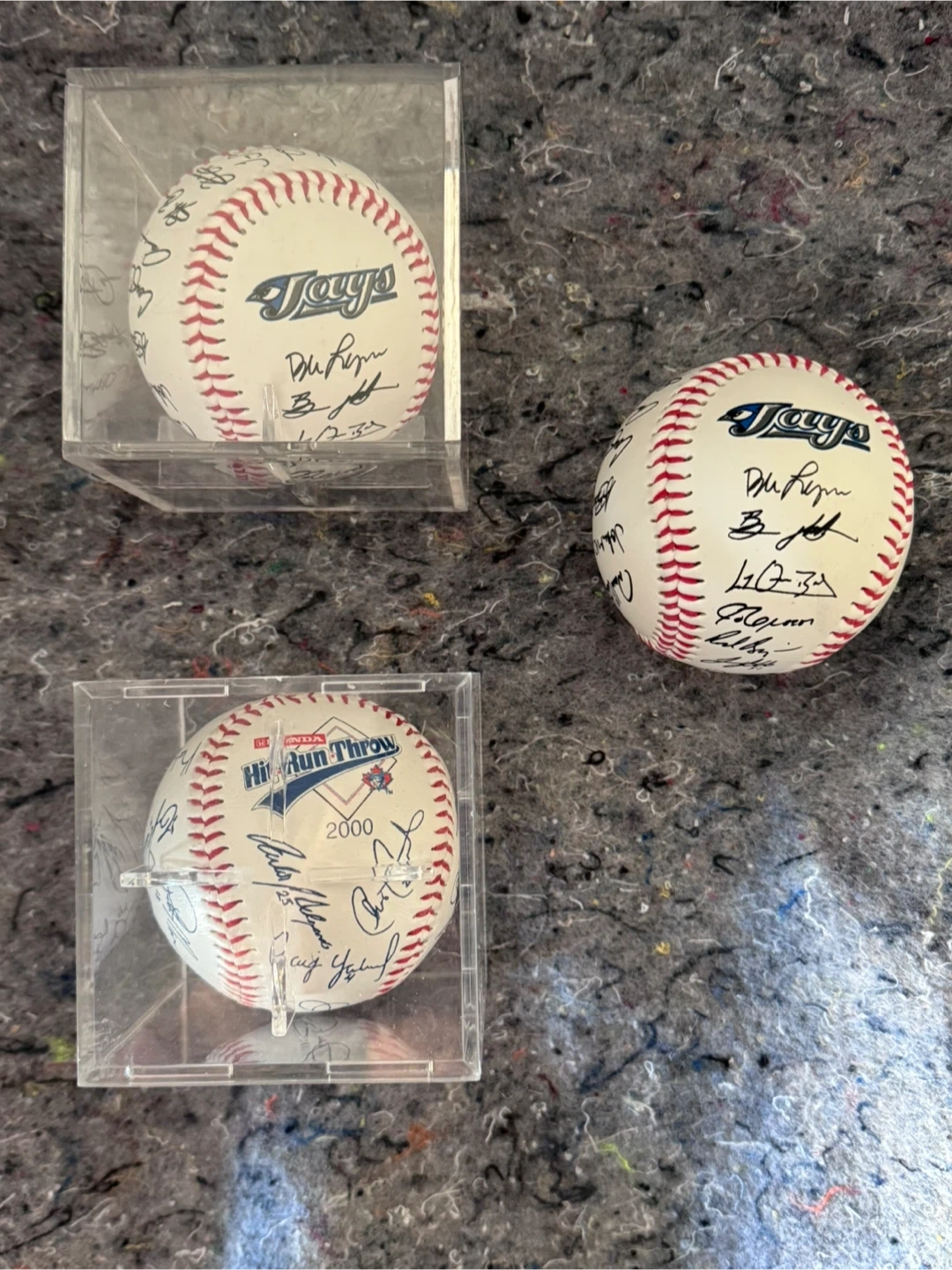 Selling signed Toronto Blue Jays baseballs. One is from the Honda Hit Run Throw 2000 event and comes in a display case. Great for any Jays fan!