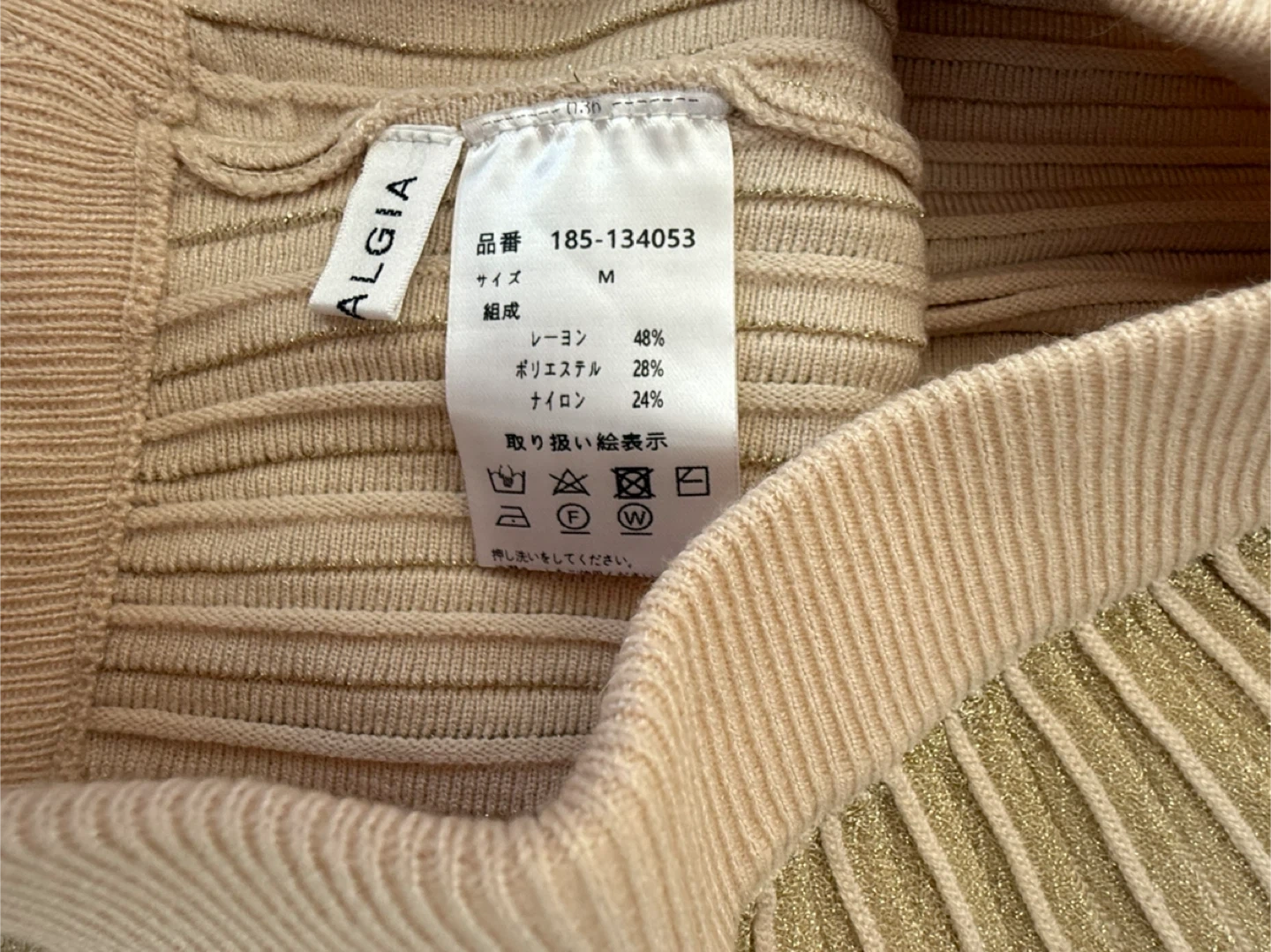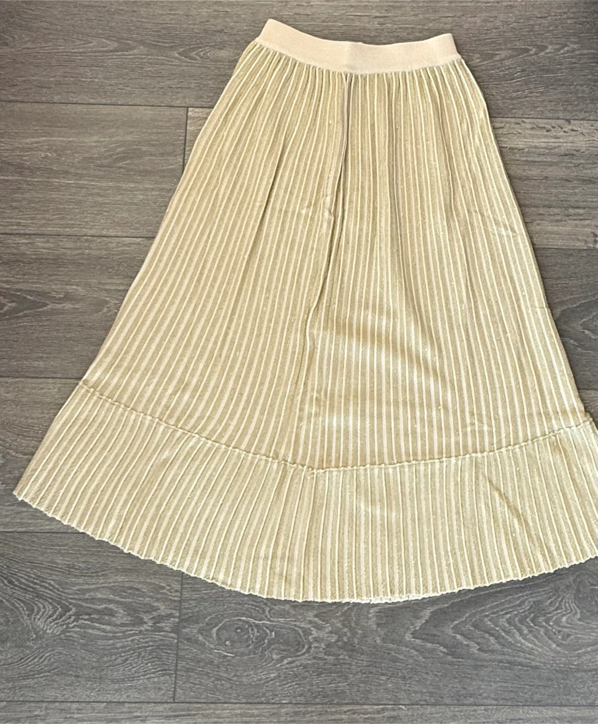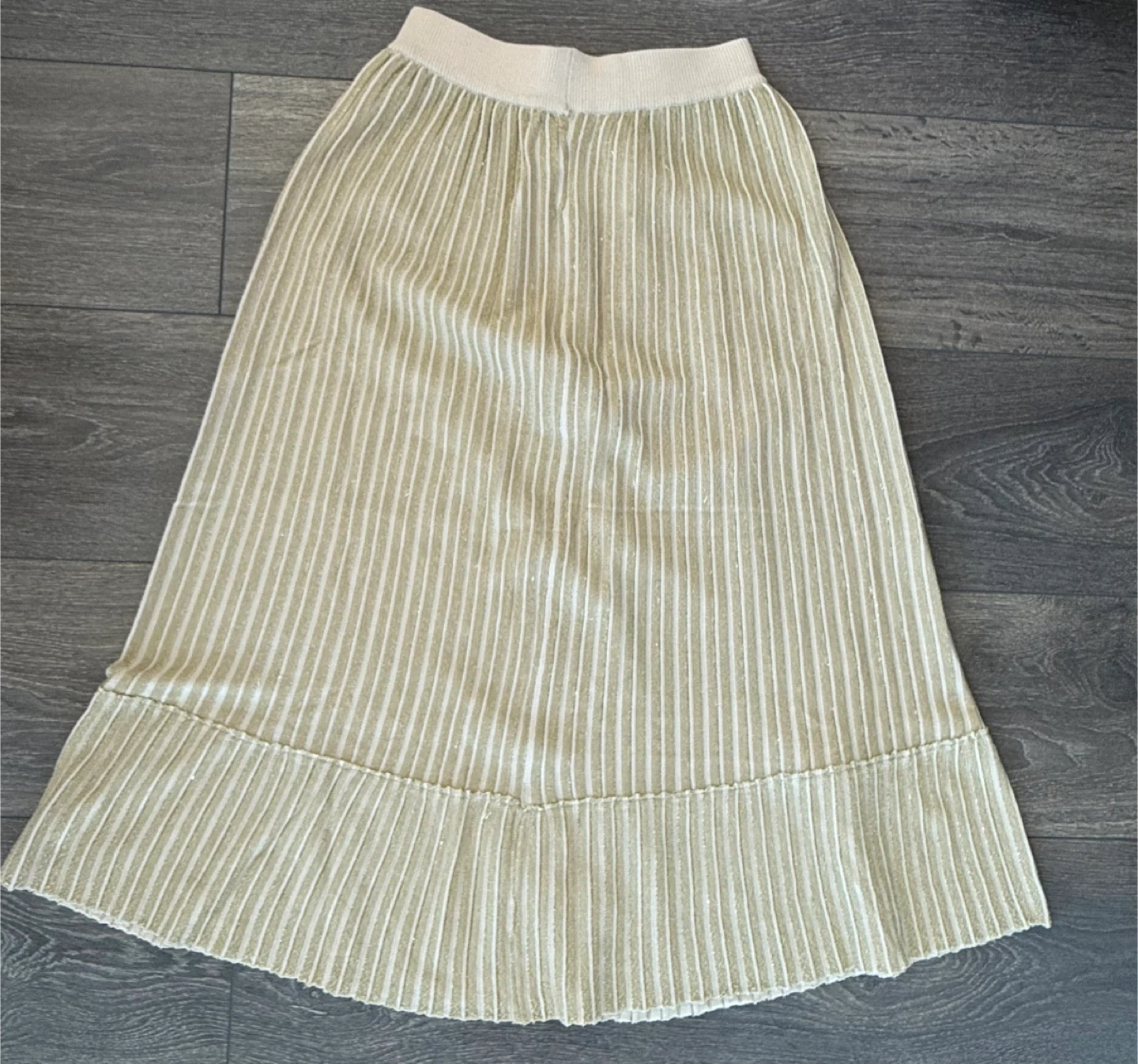 108Selling a lovely ALGIA pleated knit skirt in size M! The material is a blend of rayon, polyester, and nylon, giving it a comfortable and stylish feel. Perfect for adding a touch of elegance to your wardrobe