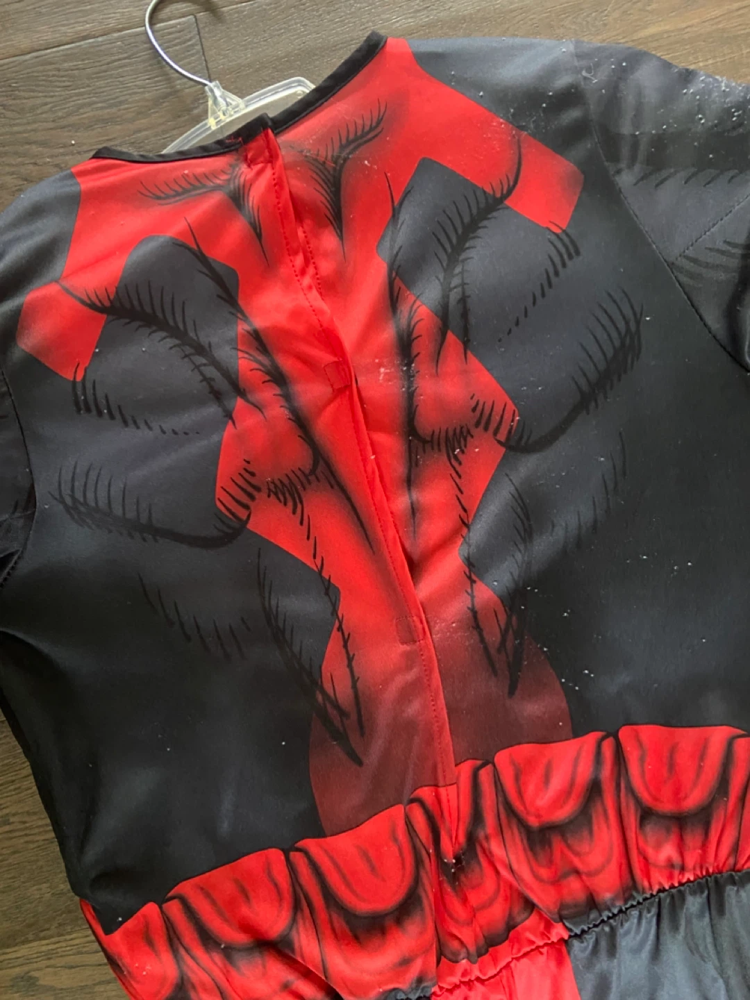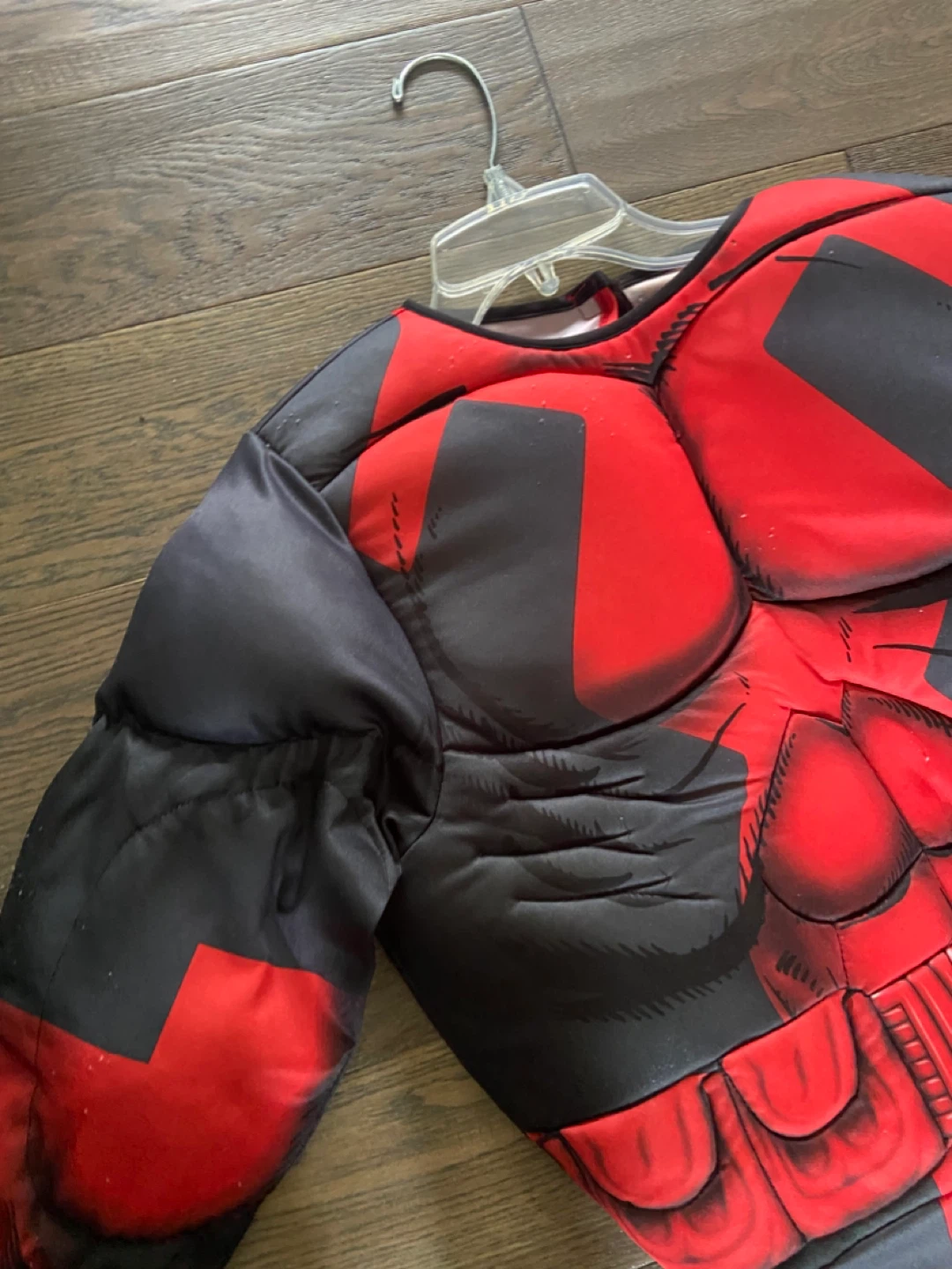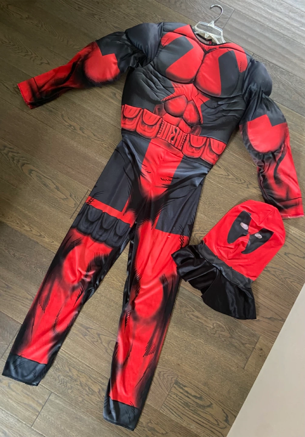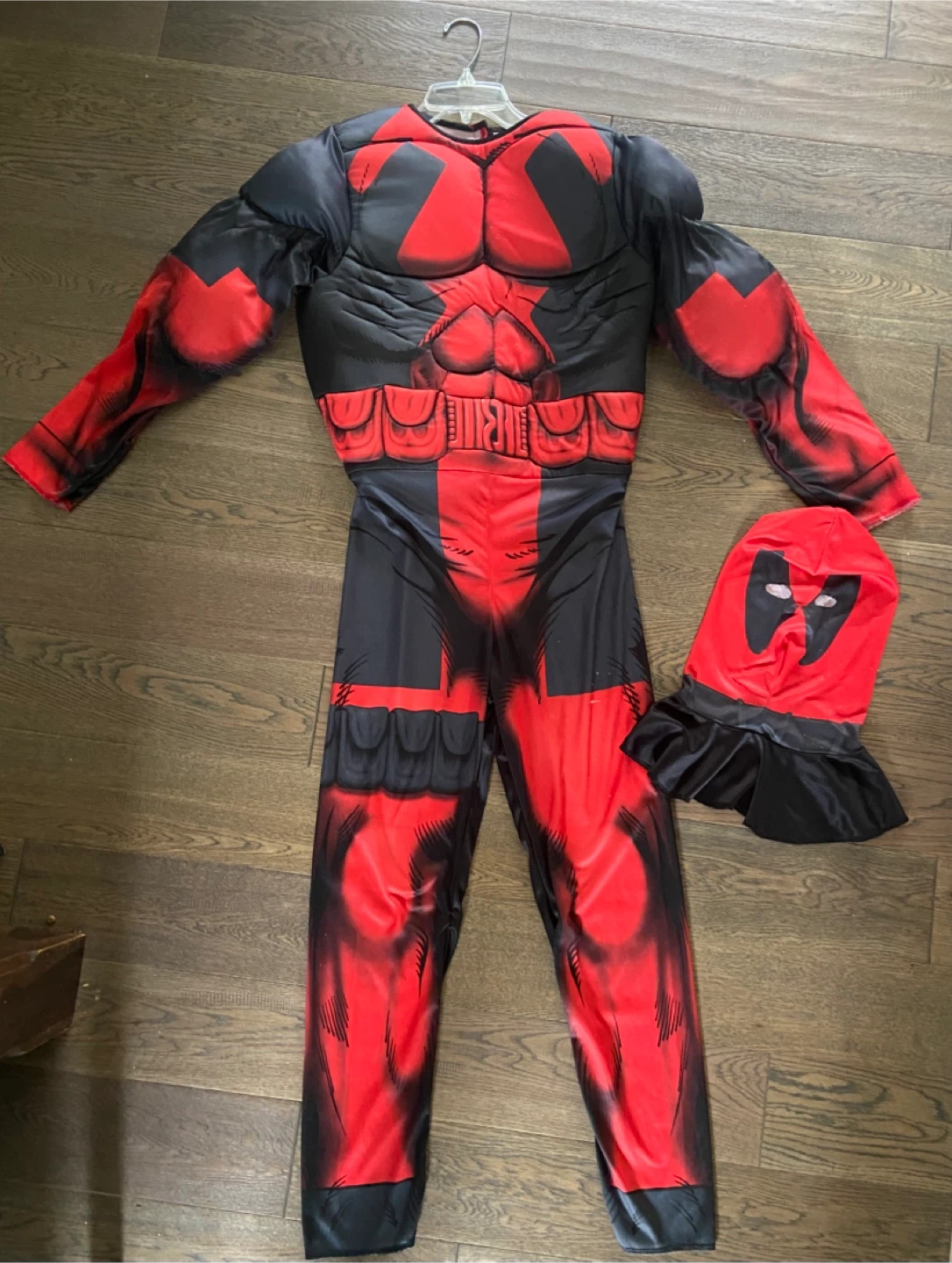 Selling a Deluxe Muscles Rubie’s Deadpool costume. It includes the mask and muscle jumpsuit. Size for teens (my son was 13 when worn). 54 inches length from top of shoulder to bottom pant leg, 19 inches across from armpit to armpit. Smk-free home
