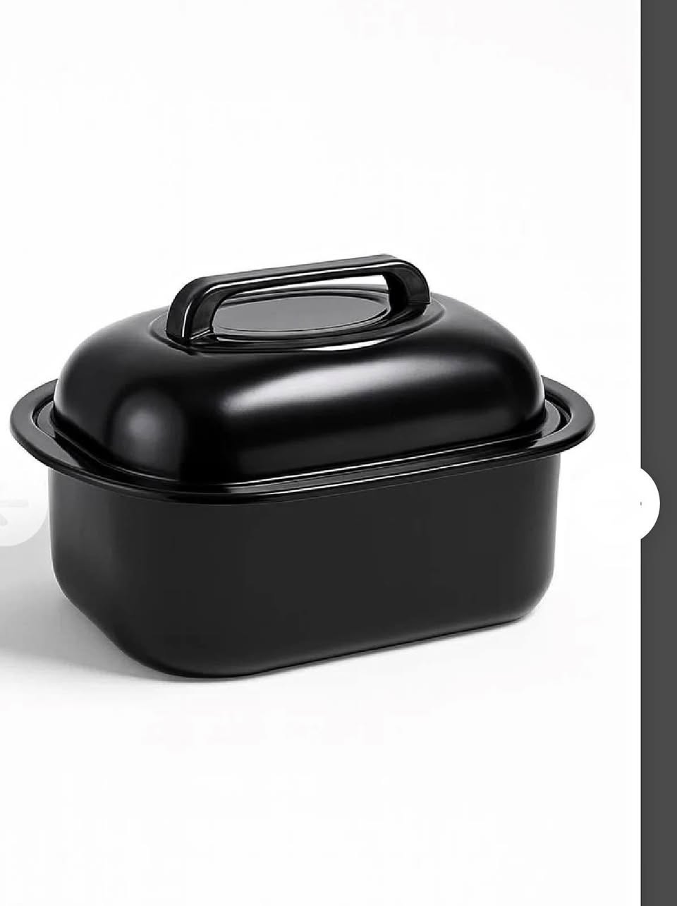 Large Black Enamel Turkey Roasting Pan w/ Domed Lid**