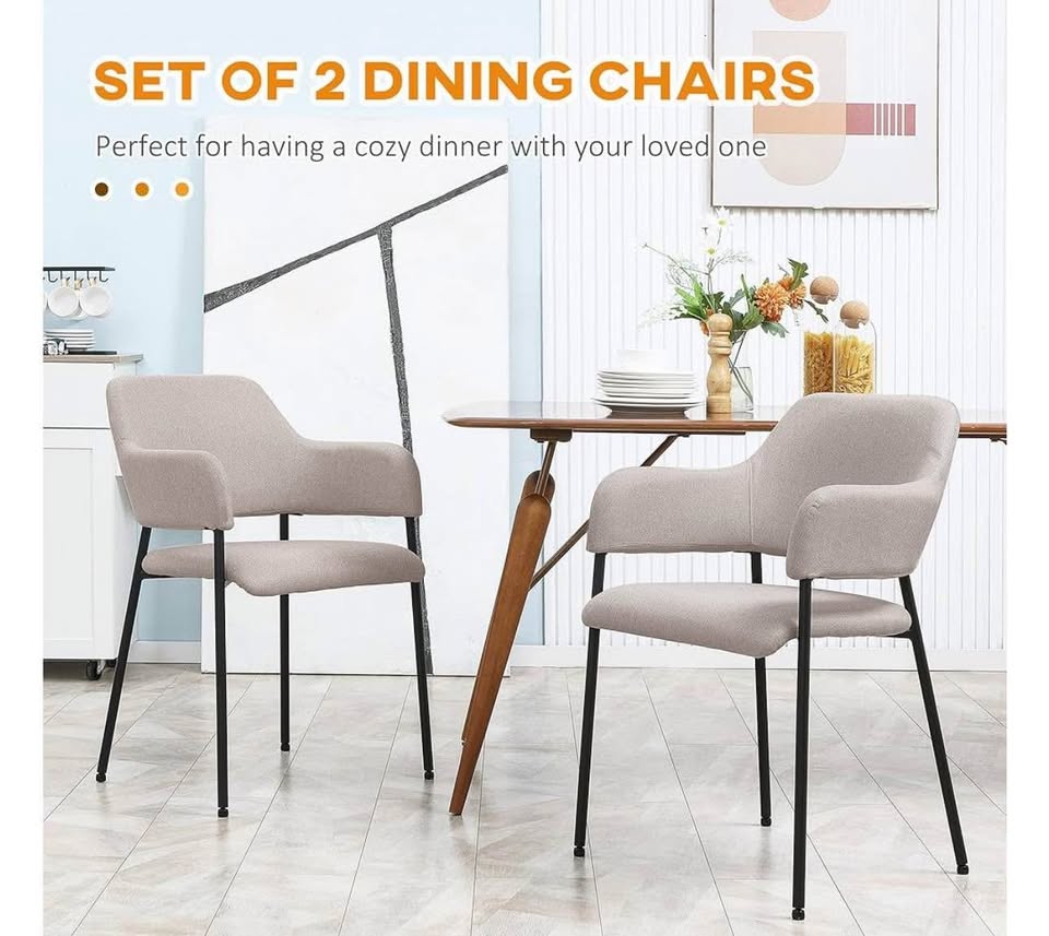 High Comfort: These kitchen chairs with gently curved backs adapt well to the contours of your body. The armrests are long enough to support when you lean back. Thick cushions are wrapped with breathable linen-feel fabric that is skin-friendly, resistant to wrinkle and fade.