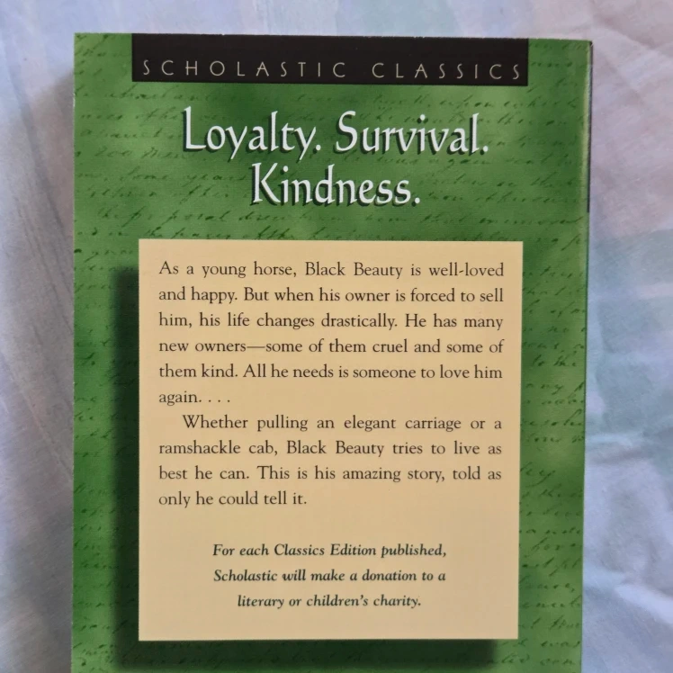 1000+Giving away a softcover copy of Black Beauty by Anna Sewell Book tells the story of Black Beauty, from his happy youth to the hardships he faces as he changes owners In excellent condition! Hoping the item finds a new home! From a smoke-free & pet-free home I'm giving away this for FREE but if you want 2 or more items for free, you have to make a purchase from my listings If you just want this for FREE, then it’s 100% free All exchanges are final; no refunds or reservations Pick-up only Location: Richmond Hill Serious inquries only; messaging only through Karrot Thank you for your interest & please check my 200+ listings for more!