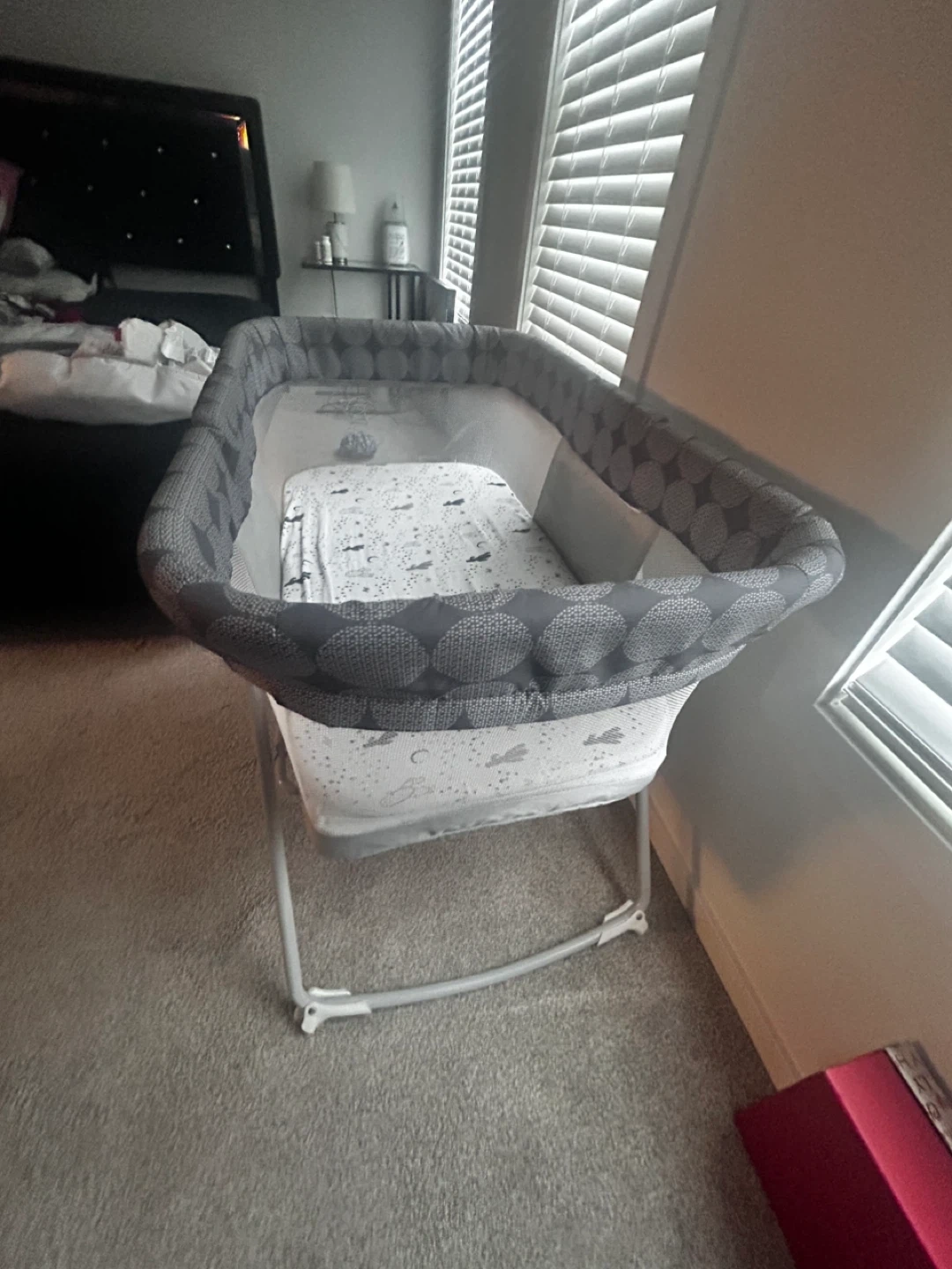 Selling a gently used bassinet. It's in great condition and perfect for a newborn. The bassinet features a mattress pad and 3-4 sheets (gently used)