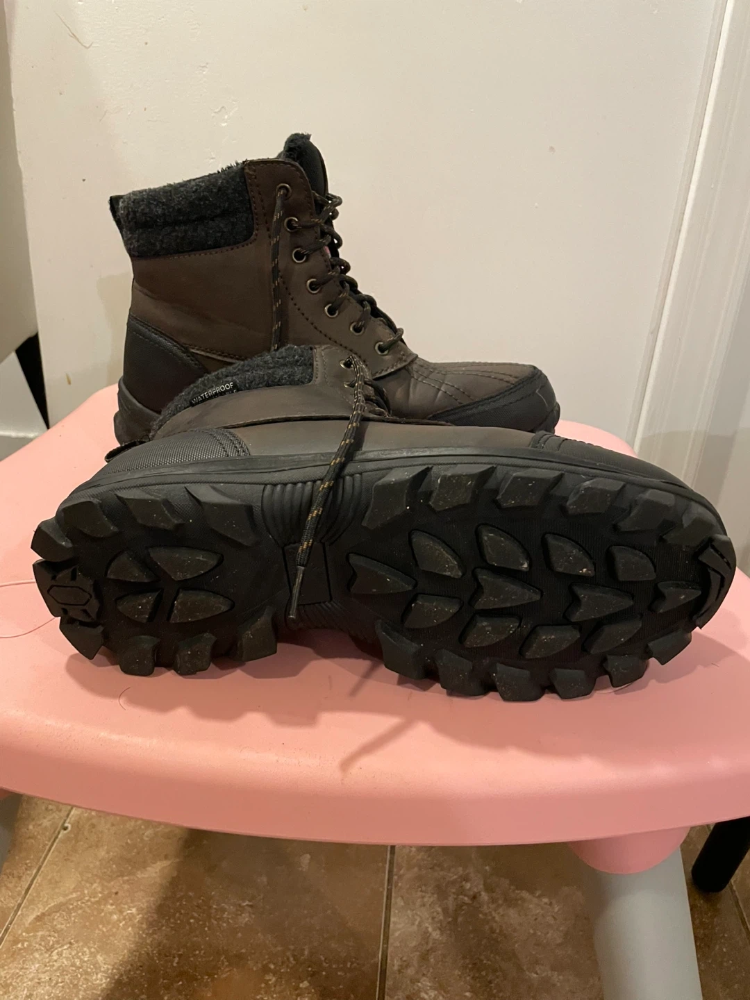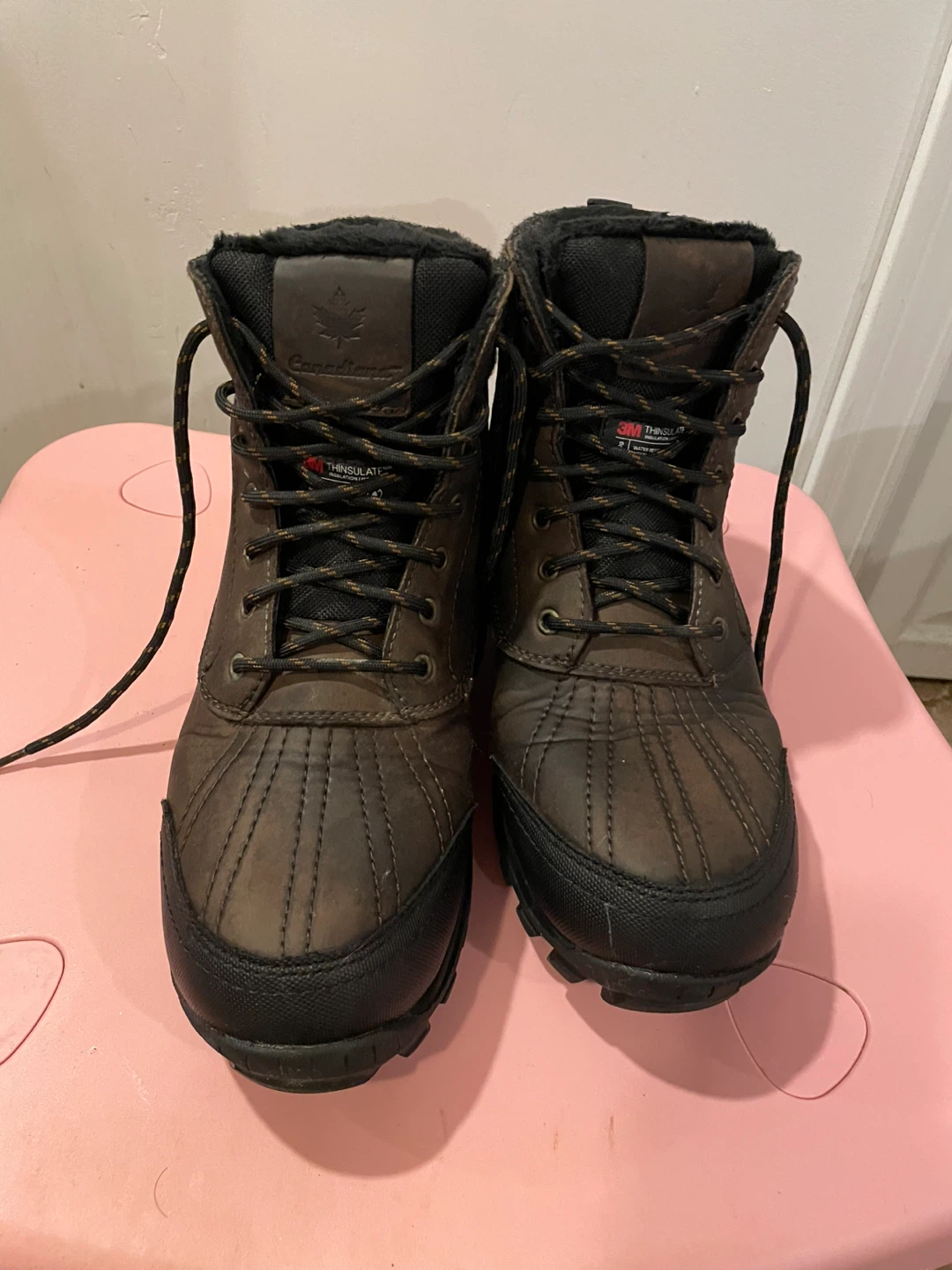 Selling a pair of Woods winter boots from 3M. They're waterproof and in great condition, perfect for the Canadian winter! They're brown and black with Thinsulate insulation to keep your feet warm and dry