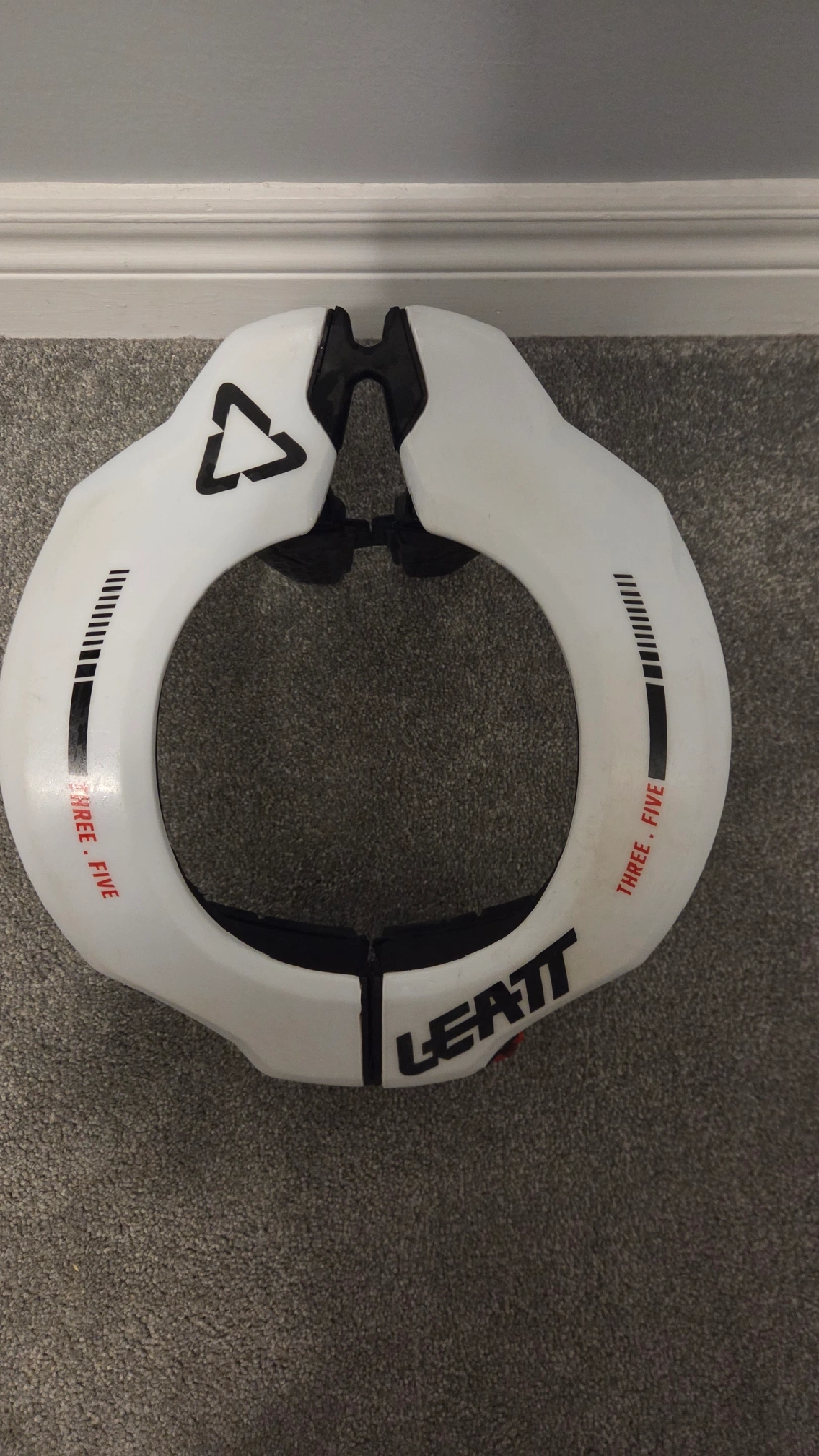 Selling a Leatt 3.5 neck brace in white. It's in great shape and ready to go! The brace is designed to help protect your neck during sports or activities where there's a risk of neck injury. Feel free to ask any questions you may have!