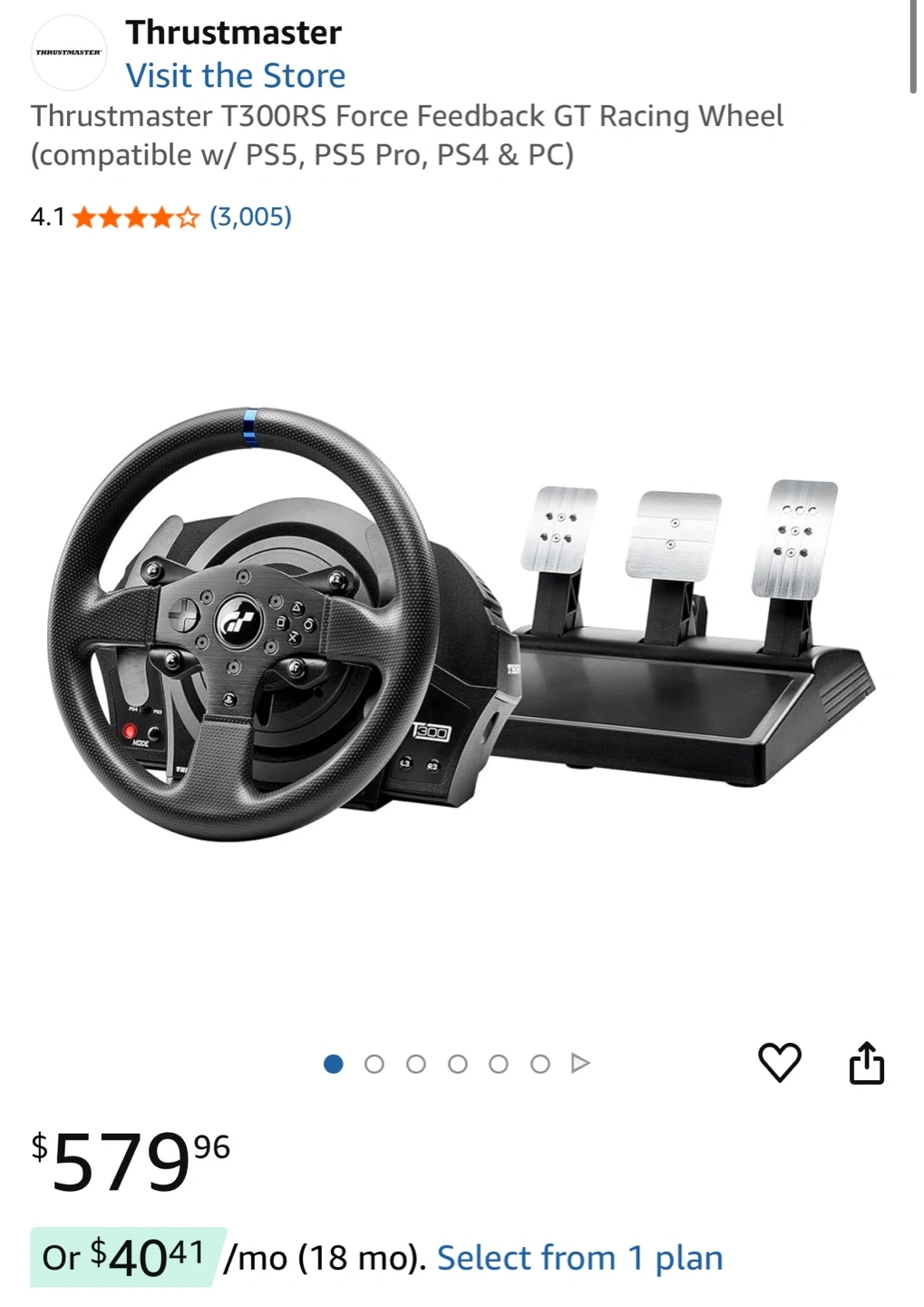 68Selling a Thrustmaster T300RS Force Feedback GT Racing Wheel. It's compatible with PS5, PS5 Pro, PS4 & PC. Retails for $579.96 ✅ Excellent condition — smooth, powerful force feedback ✅ Works perfectly with top racing games like Gran Turismo, Assetto Corsa, and F1 ✅ Includes GT-style detachable wheel and adjustable pedal set