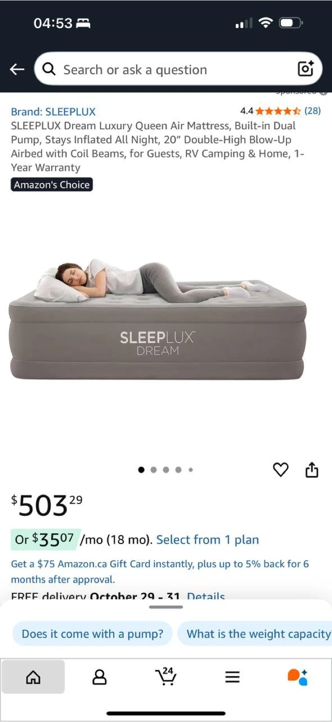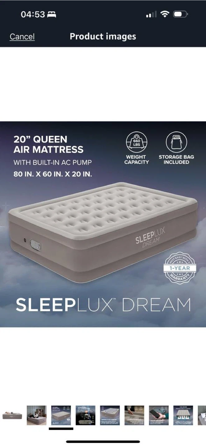 25ποΈ SLEEPLUX Dream Luxury Queen Air Mattress β Brand New! $350 Enjoy luxury comfort anywhere β home, guest room, or RV! This SLEEPLUX Dream Queen Air Mattress is brand new, never used, still in original packaging. β¨ Features: β Built-in dual electric pump β inflates & deflates quickly β Stays inflated all night β no sagging β 20β double-high design β real-bed feel β Supportive coil beam construction β Perfect for guests, home, or camping β Includes storage bag and 1-year warranty π Size: Queen (20β high) π¨ Color: Grey πͺ Weight capacity: up to 300 kg (β 661 lbs) π° Price: $350 π Pickup in Waterloo π¬ See my other listings for more great deals!