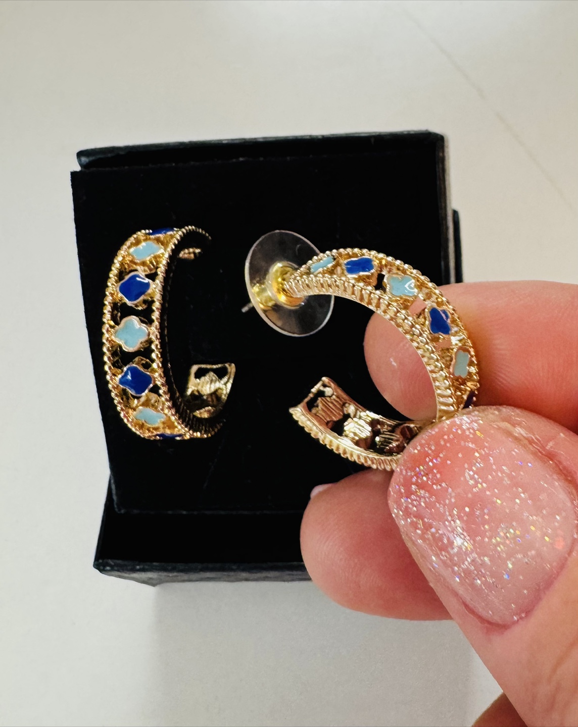 1 / 41 / 4Buy & SellGold 14k Plated mini Clover Hoop EarringsGold 14k Plated mini Clover Hoop Earrings$10These are very unique, handmade enameled. Elevate your jewelry, with a pop of color! They come NEW n a box, ready for gifting!!ConditionNewSize1”WHERE TO MEETBay RidgeView MapSELLERverifiedStaceyBay Ridge80668 reviews0 chats·1 favorites·39 viewsSEND CHAT TO SELLERHi Stacey! I’m interested in your listing.Hi Stacey! I’m interested in your listing.Get the Karrot app to chatSign In to chat