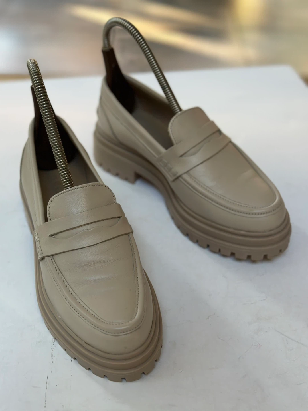 65Like NEW ! Worn once. REISS leather loafers in a lovely cream colour. Size: EUR 37/ US 6-6.5 These shoes have been meticulously cleaned and sanitized. From a smoke free, pet free home. Pick up in Alta Vista.