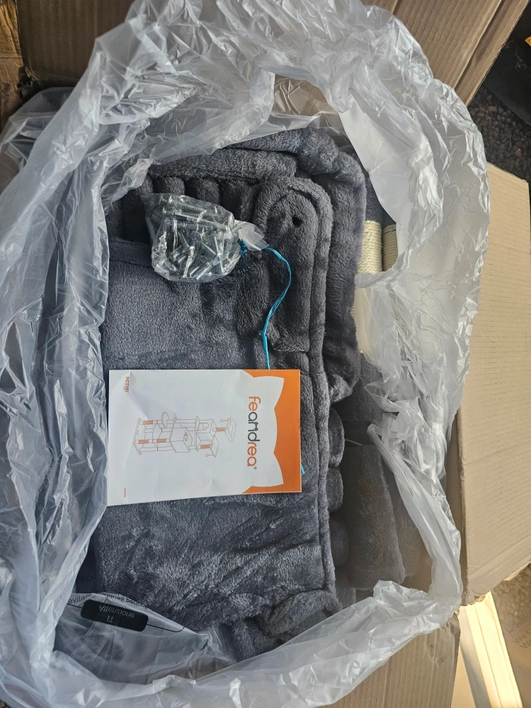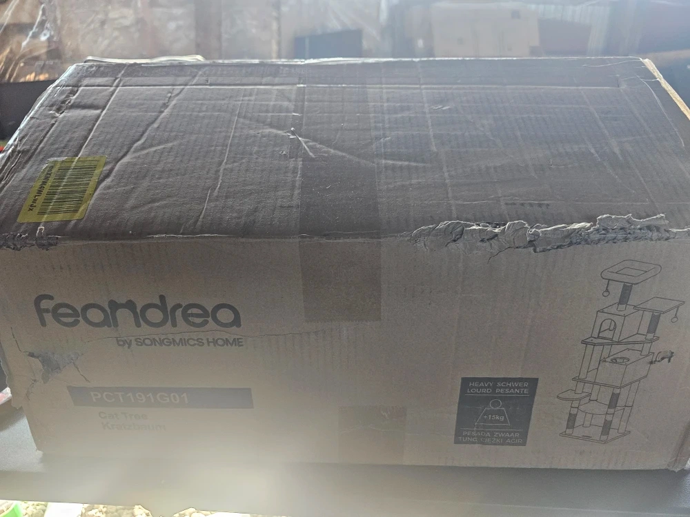 10Selling a brand new Feandrea by Songmics Home cat tree! It's still in its original box and hasn't been assembled. The model number is PCT191G01. This cat tree features multiple levels, a hammock, and scratching posts to keep your feline friend entertained. Dimensions are approximately 75 inches tall, 23.6 inches wide, and 19.3 inches deep.