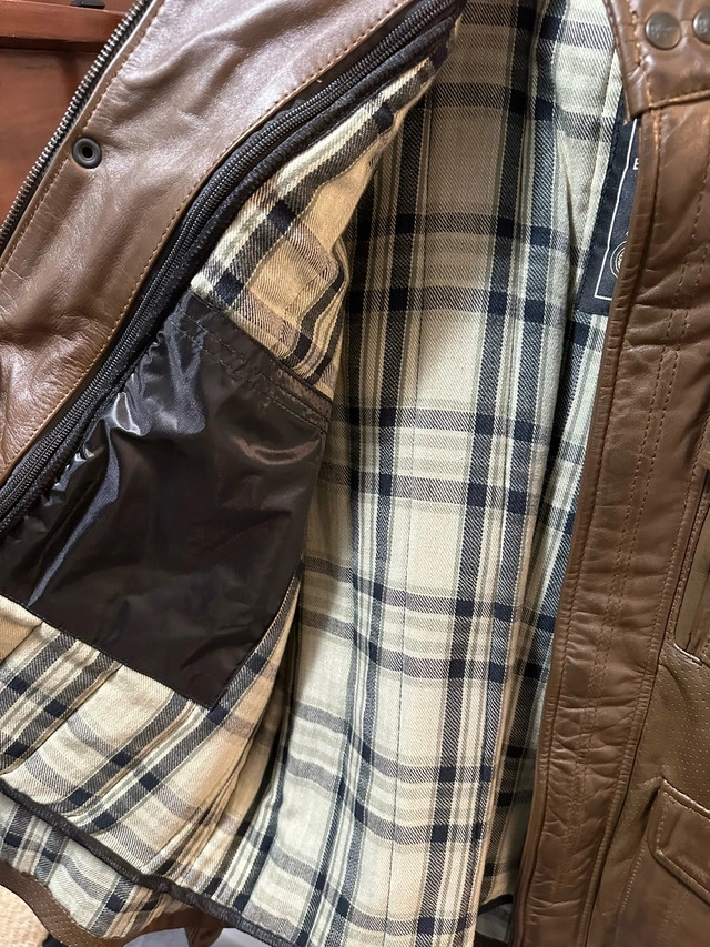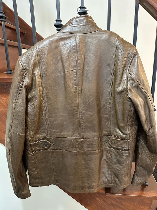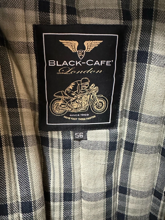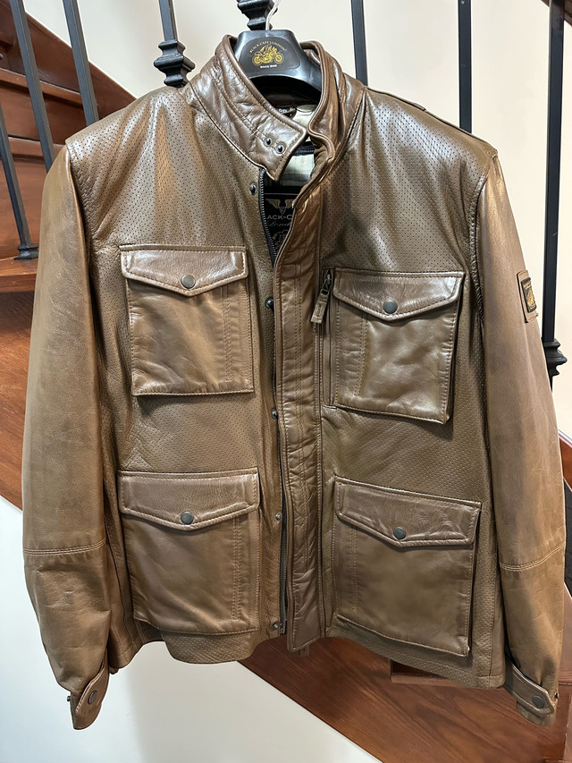 Men’s Black Cafe London Vintage Style Motorcycle Jacket. Real Cow Leather. Brown in colour. Inside liner is removable. Great condition. Never worn. Been in storage closet. United Kingdom size 56 which is basically size XXL in North American size. Asking $195