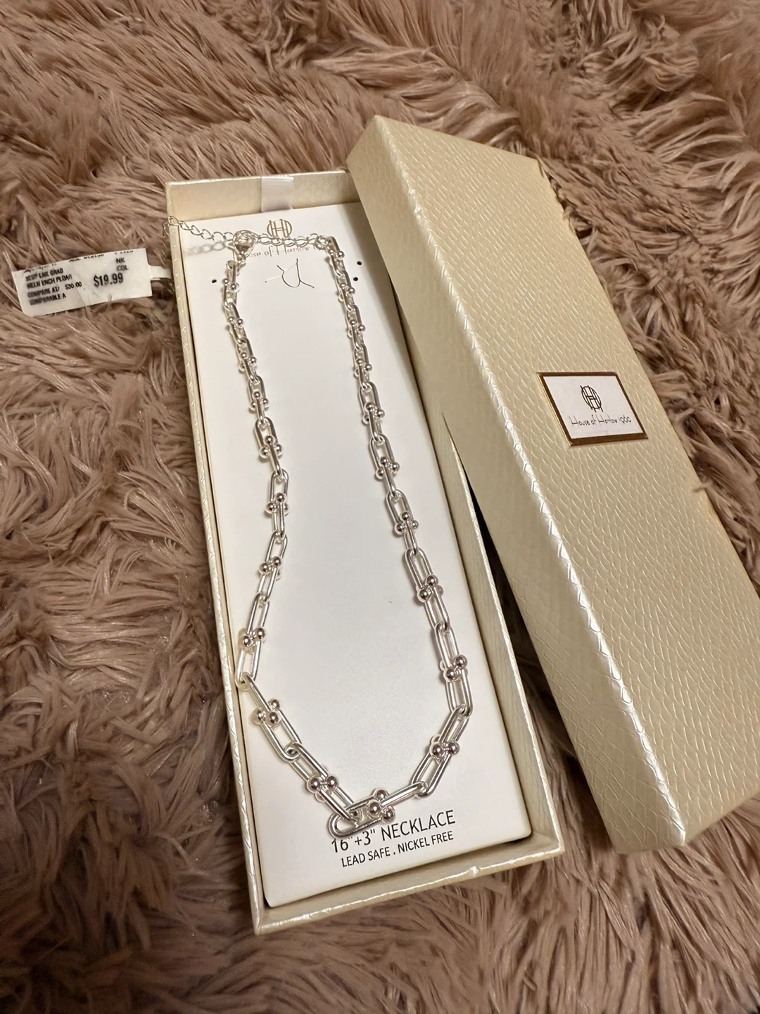Buy & SellSilver Necklace - New in Box!Silver Necklace - New in Box!$19Selling a brand new necklace! It's a silver-toned chain, 16 inches with a 3-inch extender. It's lead and nickel-free, and comes in its original boxConditionNew0 chats·3 favorites·79 viewsSELLERverifiedTamaraWillingdon Heights1053 reviewsWHERE TO MEETCheck Location