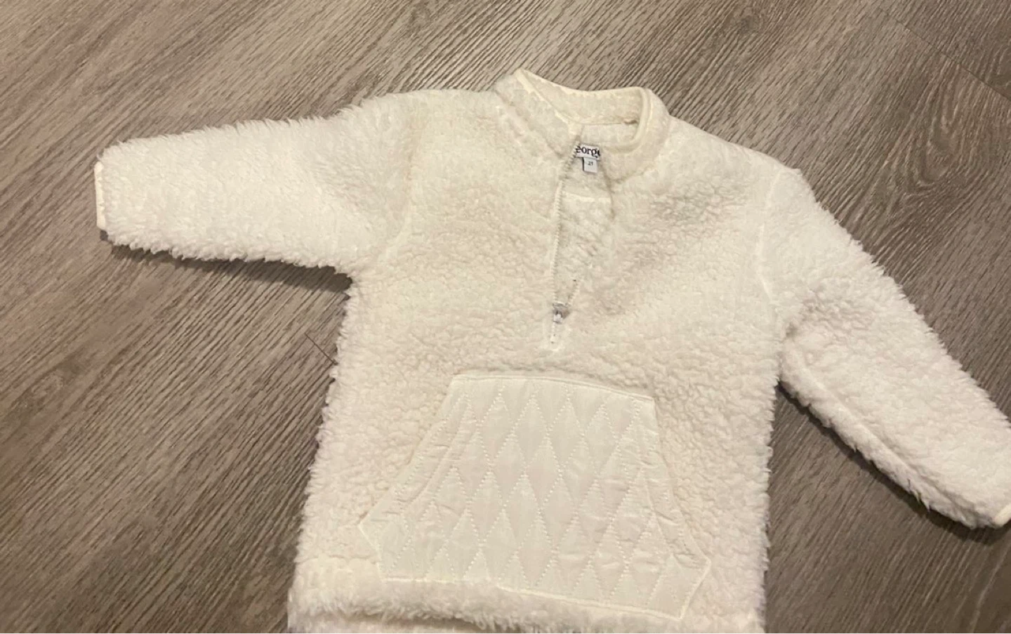 Cozy and warm white sherpa pullover from George in size 2T! Perfect for keeping your little one snug during cooler weather. It features a quarter-zip design and a cute quilted pocket on the front. Great for layering or wearing on its own!